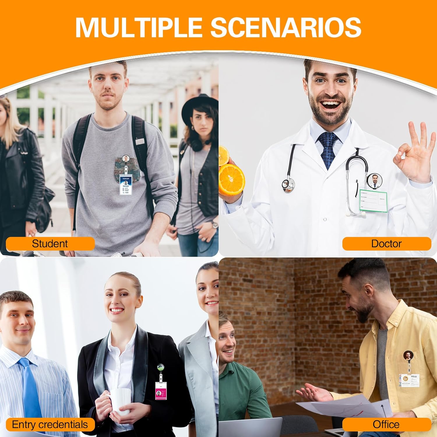 - 🎯 All-in-One Badge Solution – Tired of juggling multiple accessories? Our custom badge holder is designed to securely hold your custom ID badge, name tag, or keycard with a strong retractable clip—ideal for daily use in any workplace.