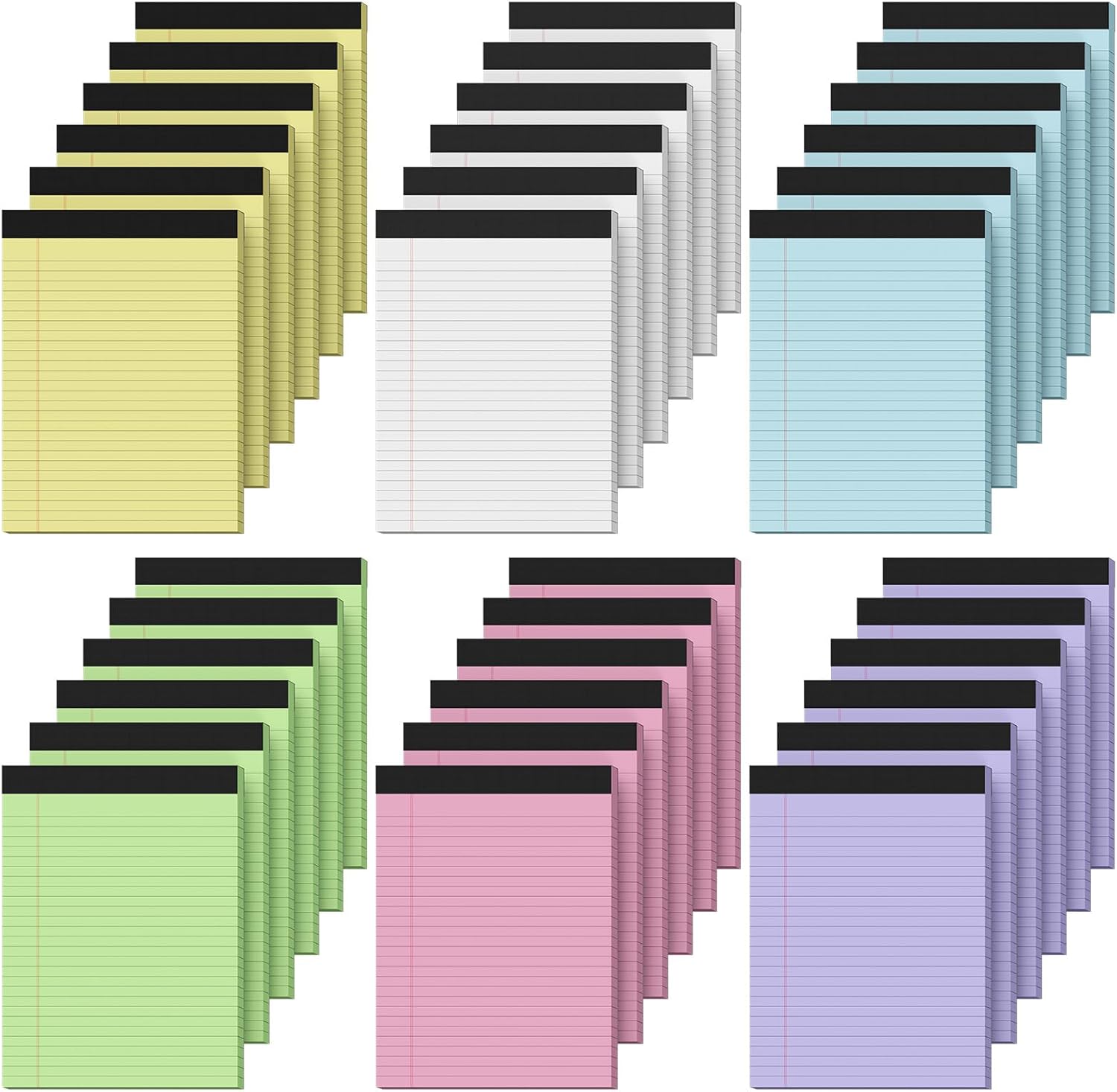 36 Pack Legal Pads 8.5 x 11, Note Pads 8.5 x 11, Wide Ruled Colored Legal Pads, Multicolor Notepads 8.5 x 11 with Sturdy White Back, 30 Sheet/Notepad, Writing Pad for School, Home, Office