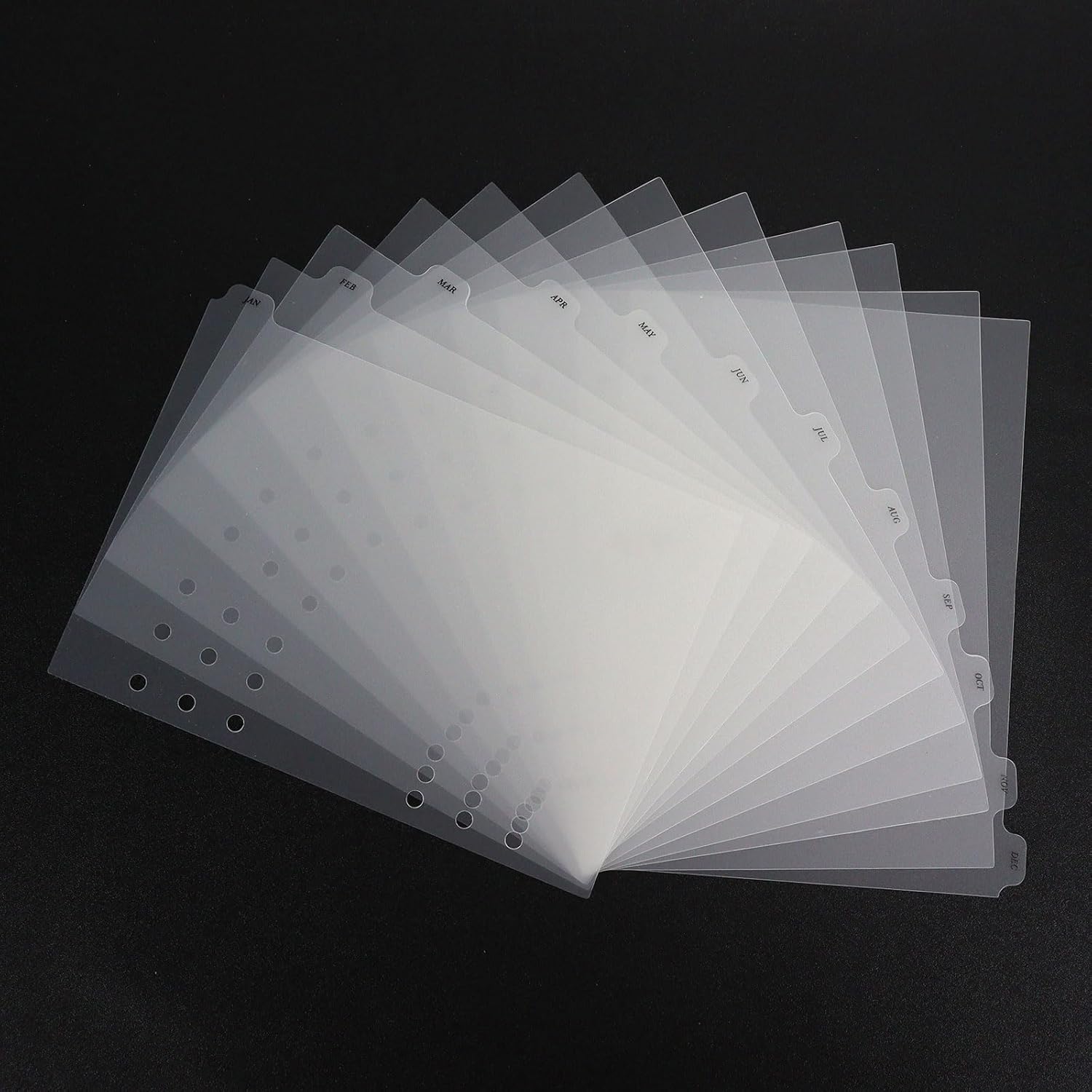 A5 Plastic Binder Dividers with Monthly Tabs 6 Holes Durable Card Dividers for Journals, Binders, Notebooks, Planners, 5.7x8.3 inch(Clear Frosted)