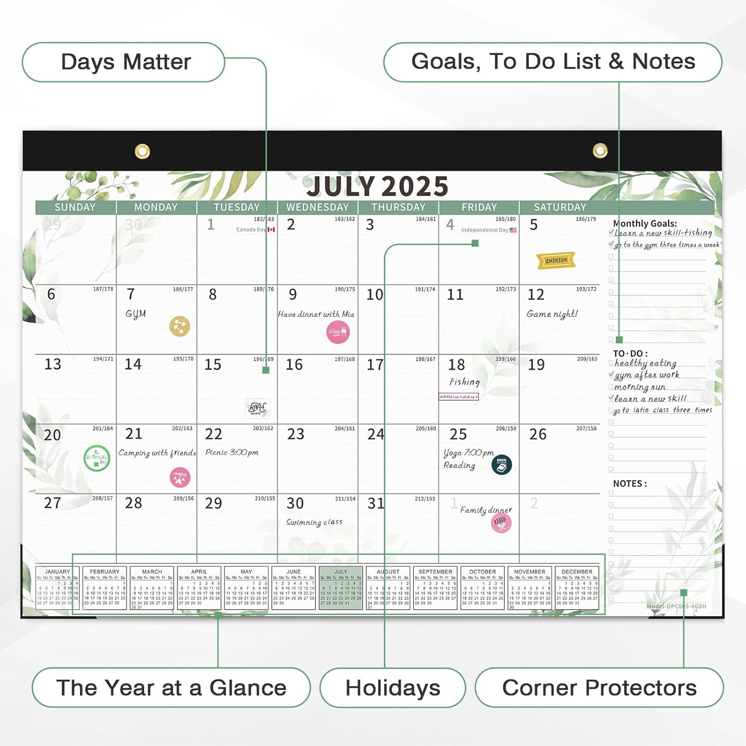 Ospelelf 2025-2026 Calendar Magnetic Desk Wall Desktop Monthly Planner from July 2025 to December 2026 Large To Do Pad with Plastic Cover for Office 17" X 12" Plant