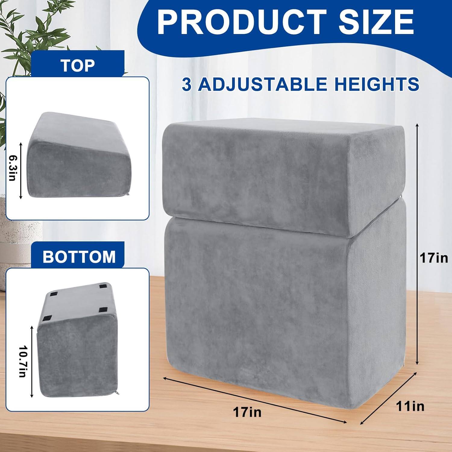 - 1. Customizable Comfort for Your Feet Say goodbye to awkward sitting positions! Our under-desk footrest offers three adjustable height options (17" x 11" x 17"), thanks to its innovative two-piece design with secure hook-and-loop fasteners. Tilt, stack, or separate the layers to find your perfect ergonomic angle—whether you’re at your office desk, gaming setup, or home workspace.