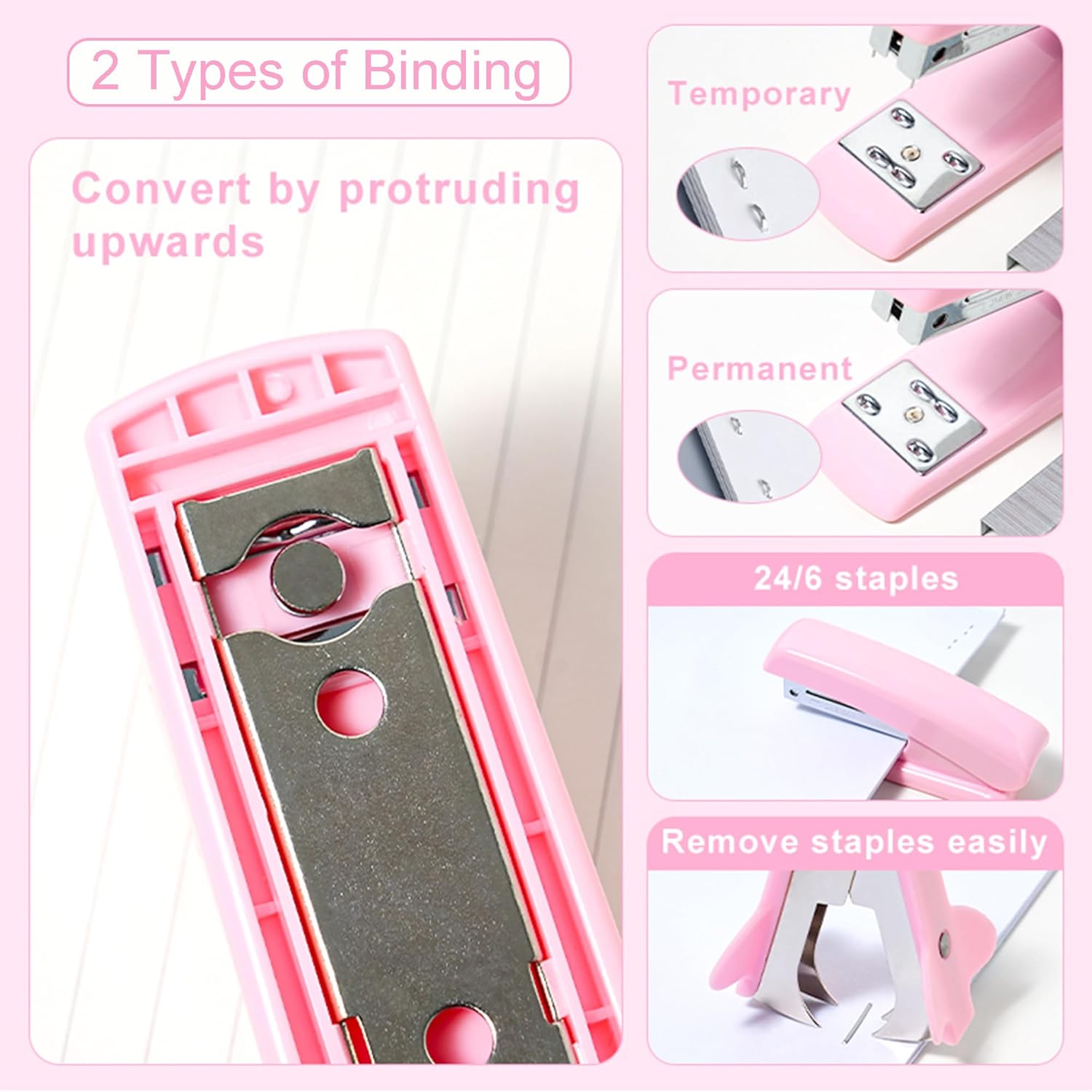 Pink Desk Accessories with Pen Holder, Pink Office Supplies Desk Organizers and Accessories for women, Tape Dispenser, Stapler, Staple Remover, Staples, Clips Set, Ruler, Scissor, Pen, Tape
