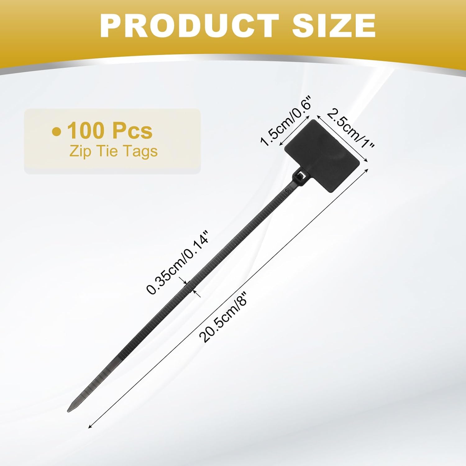 - Package & Size: You will receive 100 cable marker tags. The table tie size is 20.5 x 0.35 cm/8 x 0.14 inch (L*W), and the label size is 2.5 x 1.5 cm/1 x 0.6 inch (L*W), which is enough for your daily use. Note: Due to manual measurement, there will be a slight deviation of ±1/2cm from the actual size.