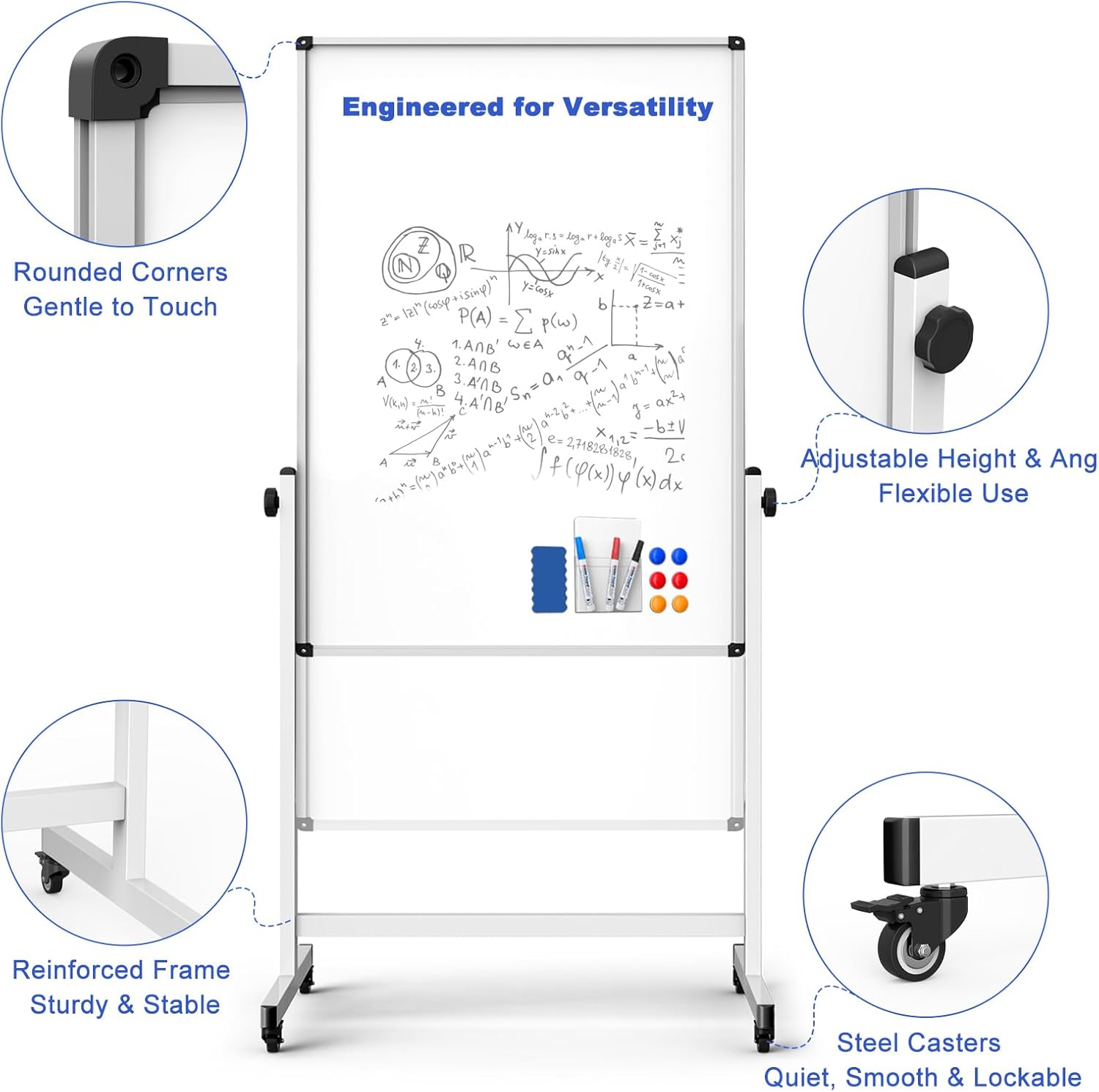 - Double-Sided Magnetic Dry Erase Board: This double-sided dry erase board offers twice the writable surface, well-suited for presentations, brainstorming sessions, lesson plans, and project tracking. Both sides feature a magnetic surface to hold papers, charts, and notes securely with included magnets, enhancing your productivity.