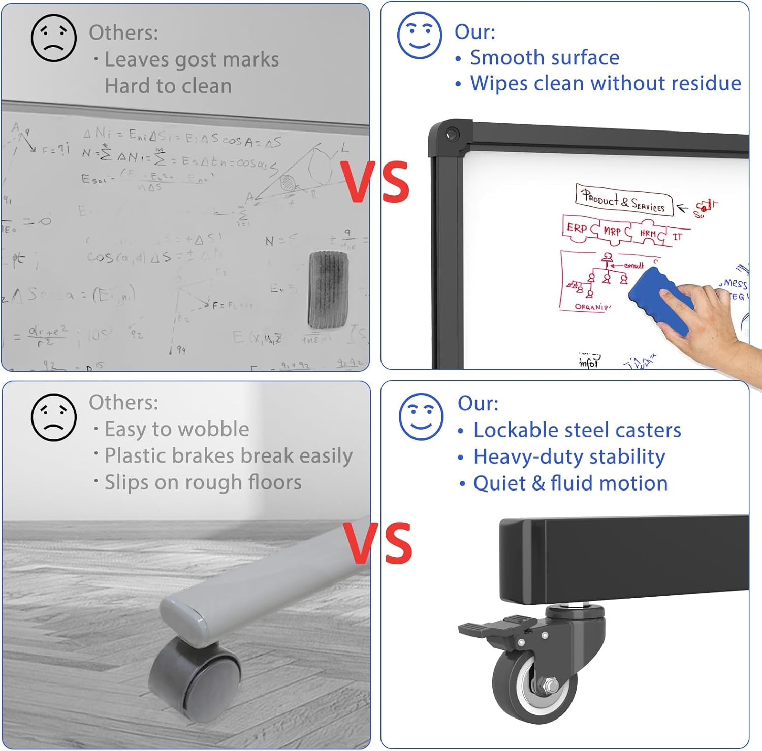 - Safe Packaging & Support You Can Trust: Your mobile dry erase board is shipped in reinforced honeycomb packaging with blister protection to prevent damage. If anything goes wrong during delivery, our team is ready to offer responsive, reliable support to make things right.