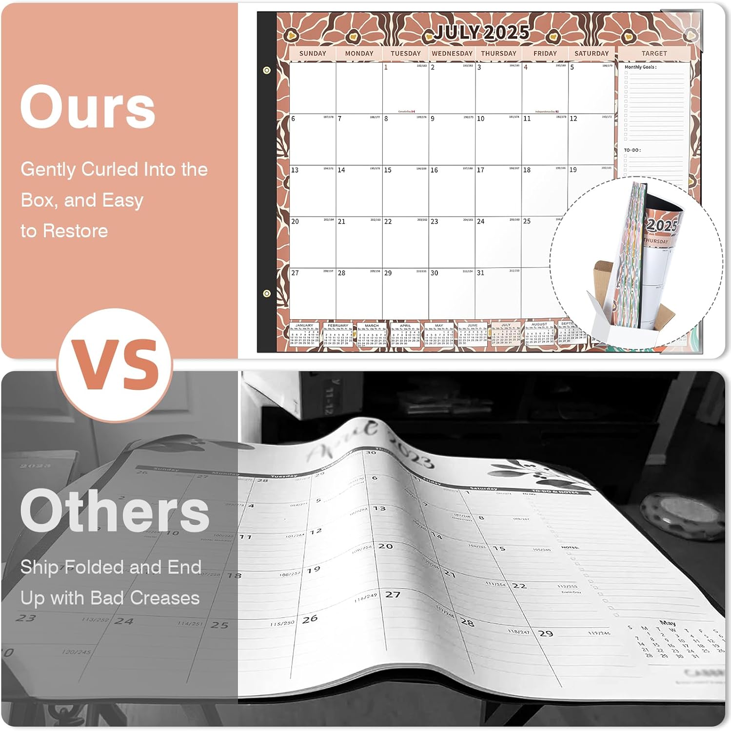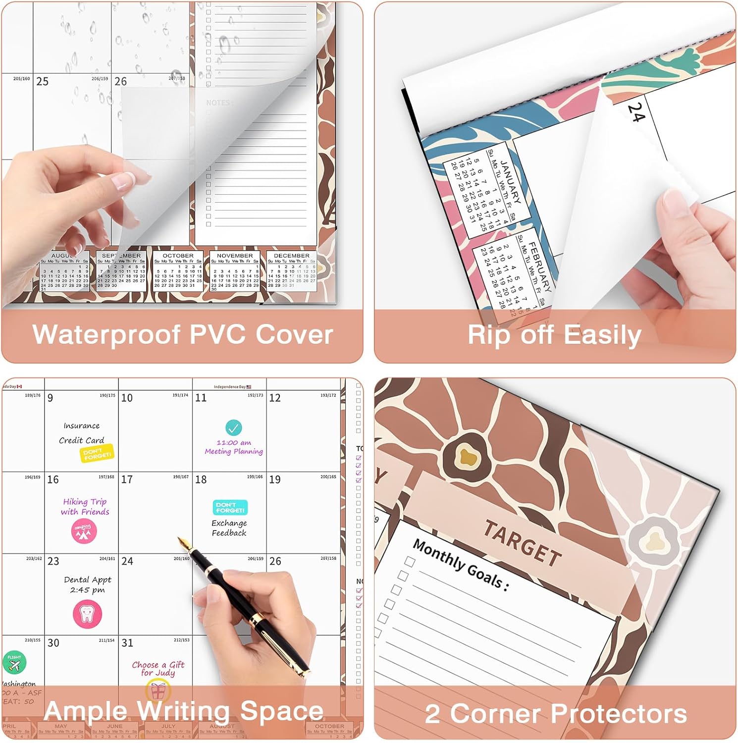 - 【Premium Thick Paper】With a weight of 0.264lb per sheet, the 2025 calendar is designed using premium thick paper, ensuring a high-quality writing experience. It is resistant to ink seepage, resulting in clean and crisp writing. To safeguard the calendar from dust and liquids, it comes with a transparent PVC cover. Two corner protectors are included to keep the pages flat. Plus, the cutting line allows for effortless tearing of each month's page. This desk calendar is perfect to long-term use.