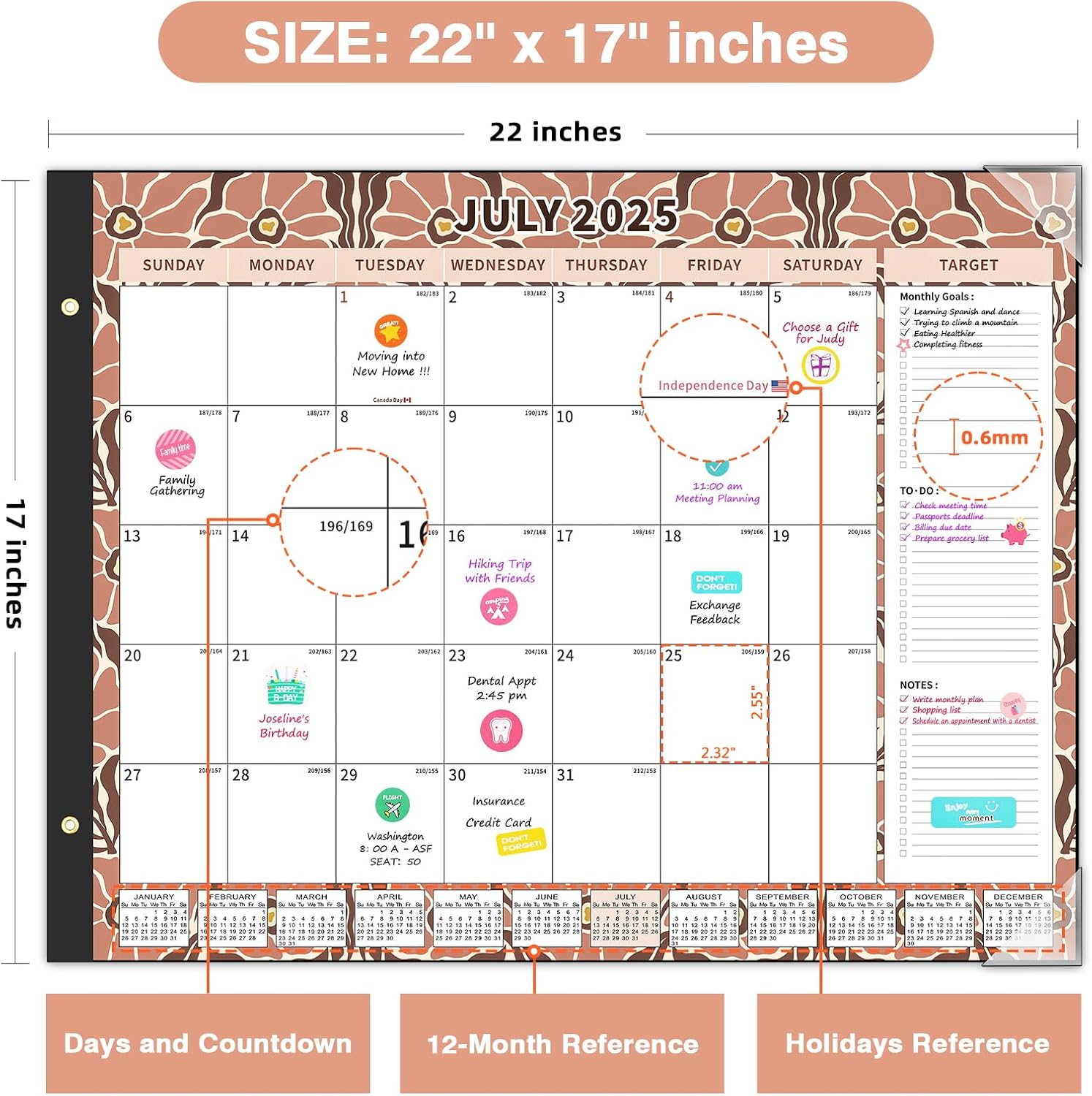 - 【22" x 17" Large Calendar】 Our office desk calendar, designed with productivity in mind, offers an expansive writing area that allows you to effortlessly schedule, plan, and keep track of crucial dates, deadlines, and holidays. Featuring prominently displayed holiday markings and convenient 12-month referencing calendars, this calendar ensures that you can effortlessly visualize and manage your daily, weekly, and monthly schedule with utmost ease and efficiency.