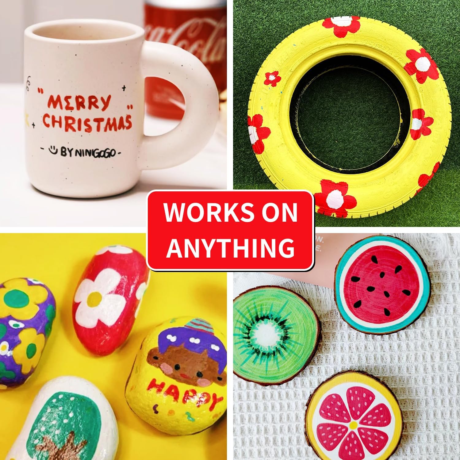 - Quick-Drying: Featuring quick-drying oil-based ink that resists water, fading and abrasion. The oil based paint pens is glossy. For Instant gratification: Get your projects completed in record time with our quick-drying markers, Drying time 45 - 60 seconds