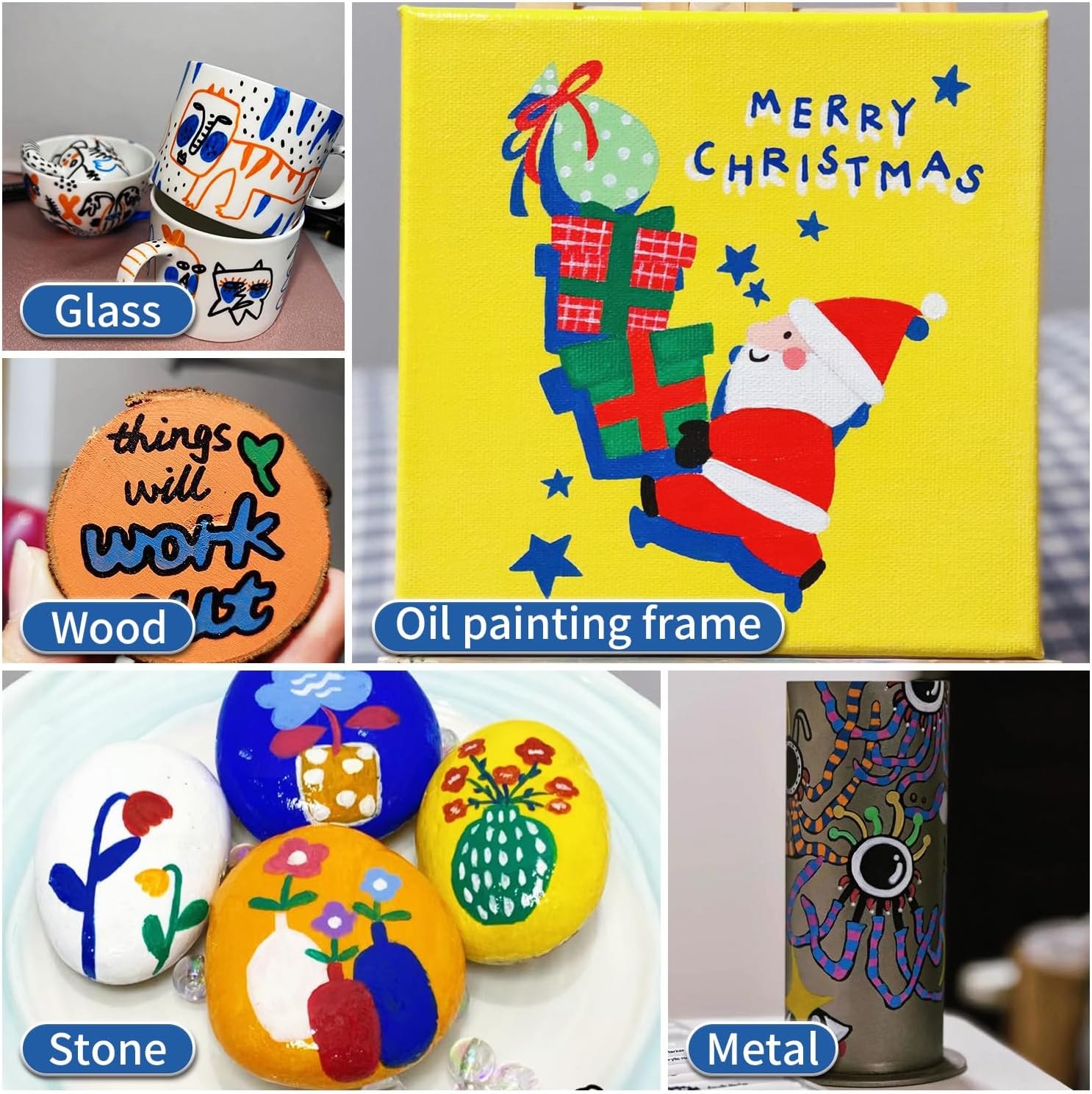 - Quick-Drying: Featuring quick-drying oil-based ink that resists water, fading and abrasion. The oil based paint pens is glossy. For Instant gratification: Get your projects completed in record time with our quick-drying markers, Drying time 45 - 60 seconds