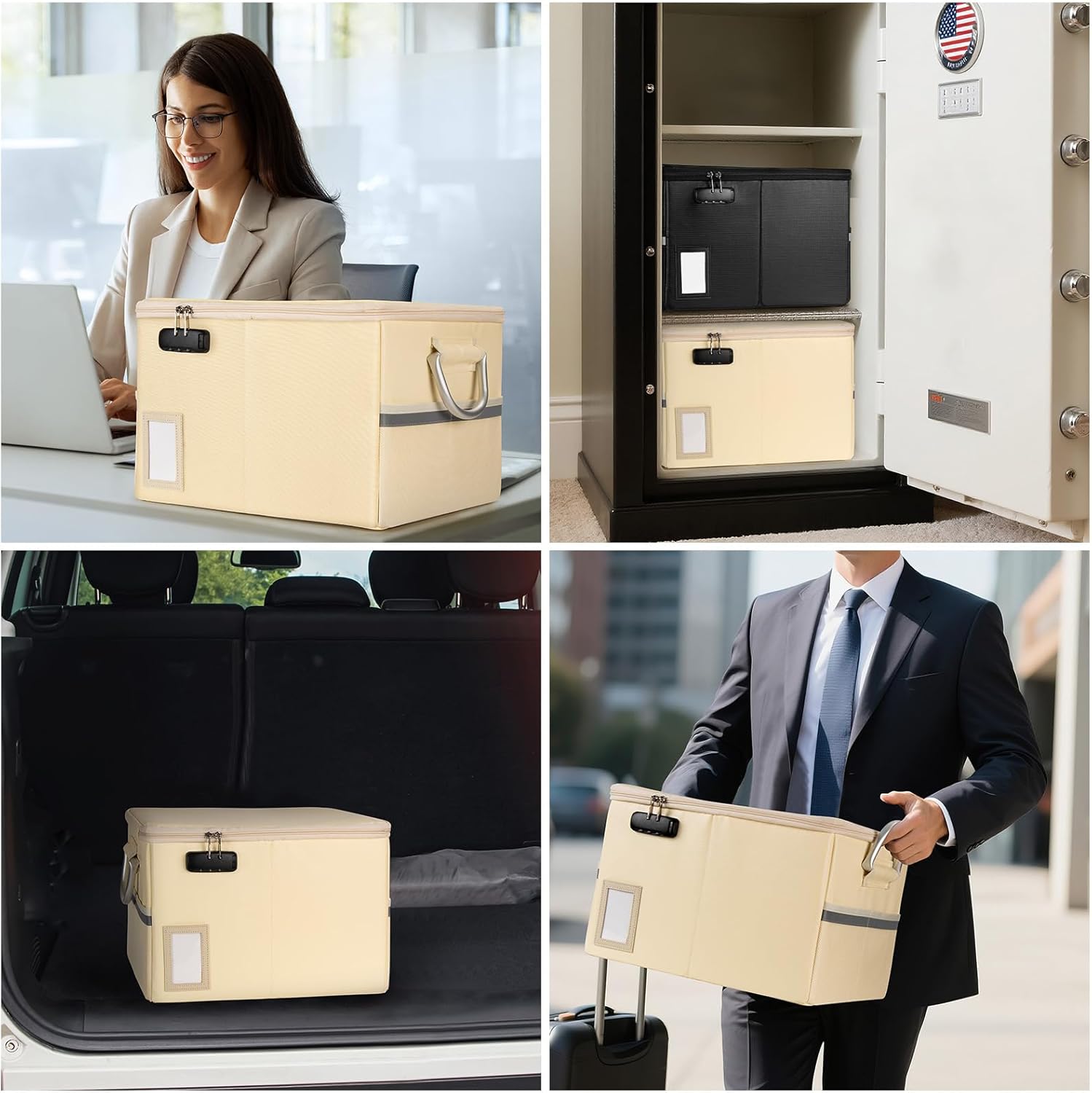 - Fireproof and water-resistant safe: The exterior material of Fireproof File Box is made of upgraded anti-static silicone coated fiberglass, which can withstand temperature up to 2000℉. Fireproof Document Box is not only fireproof but also highly water-resistant, so you don't have to worry about your important documents getting wet by rain.(Does not include folders)