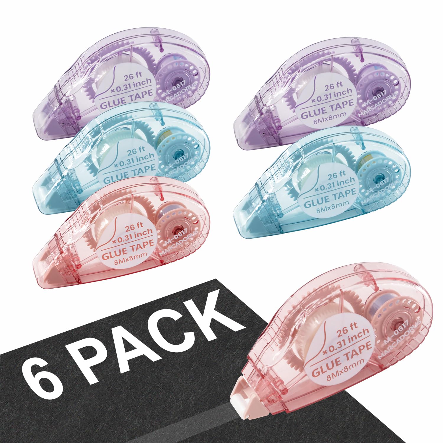 Double Sided Tape for Crafts, Pack of 6 Glue Tape Roller, 26 Ft x 0.31 in Scrapbook Tape, Tape Runner for Scrapbooking Supplies, Office, School, Craft Supplies and Journaling Supplies.