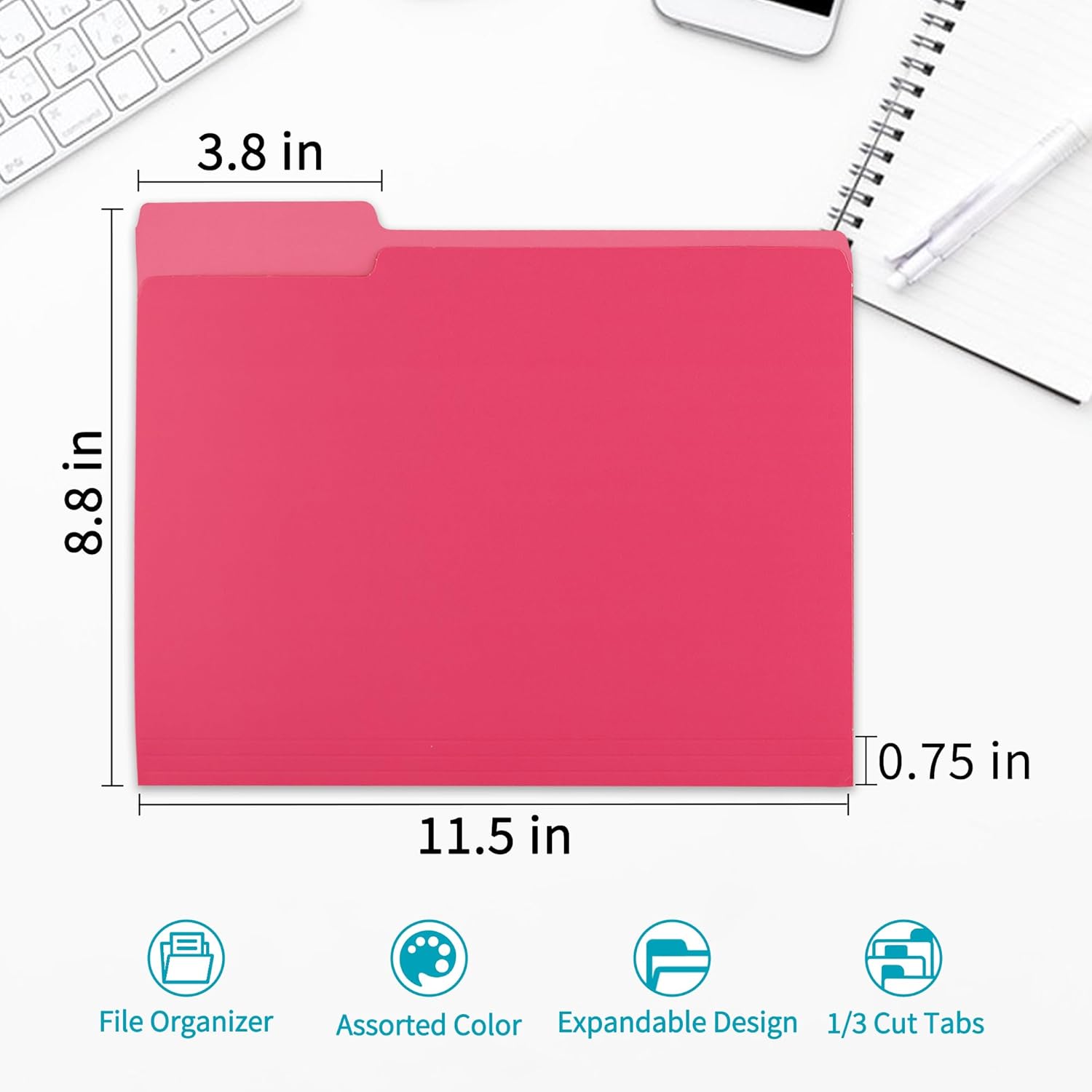 100 Packs Colored File Folders,Rose Red File Folders,Two Tone Color File Folder 8.5 x 11 Inch,1/3 Cut Tabs Letter Size,Manila File Folders for Office,School and Home,Organization