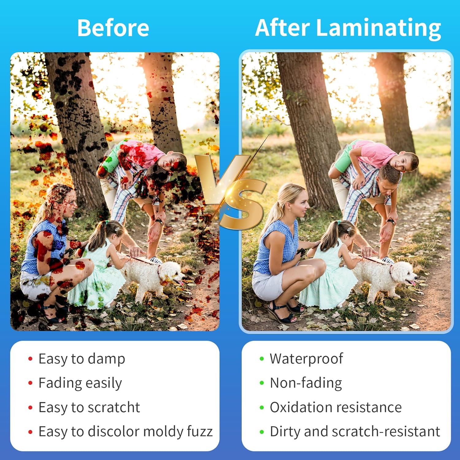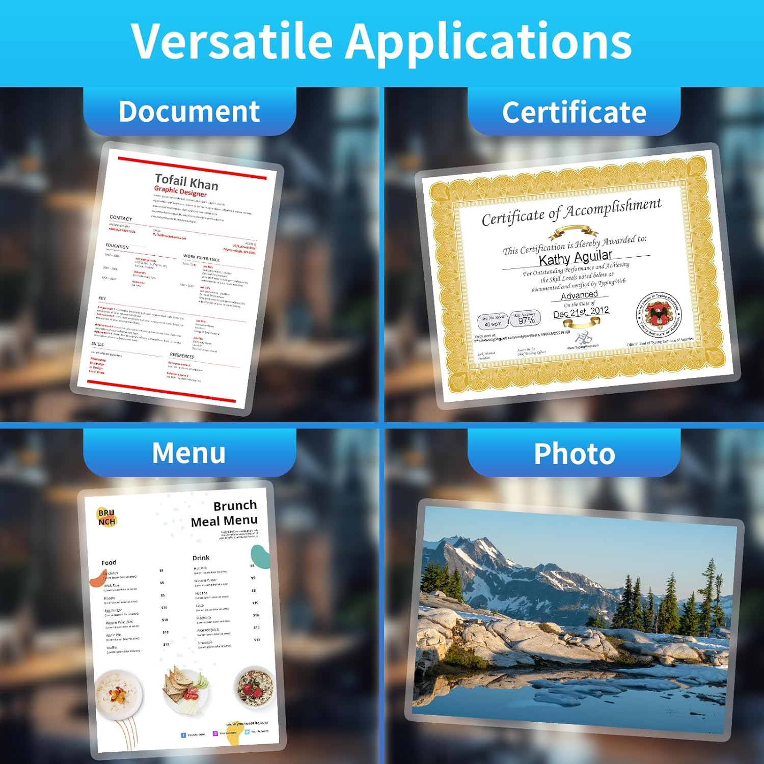 - ✅【 Extra Thickness & Durability 】:5 MIL Thick Laminating Pouches More rigid protection against bending, creasing, and frequent handling, ideal for long-term document preservation.