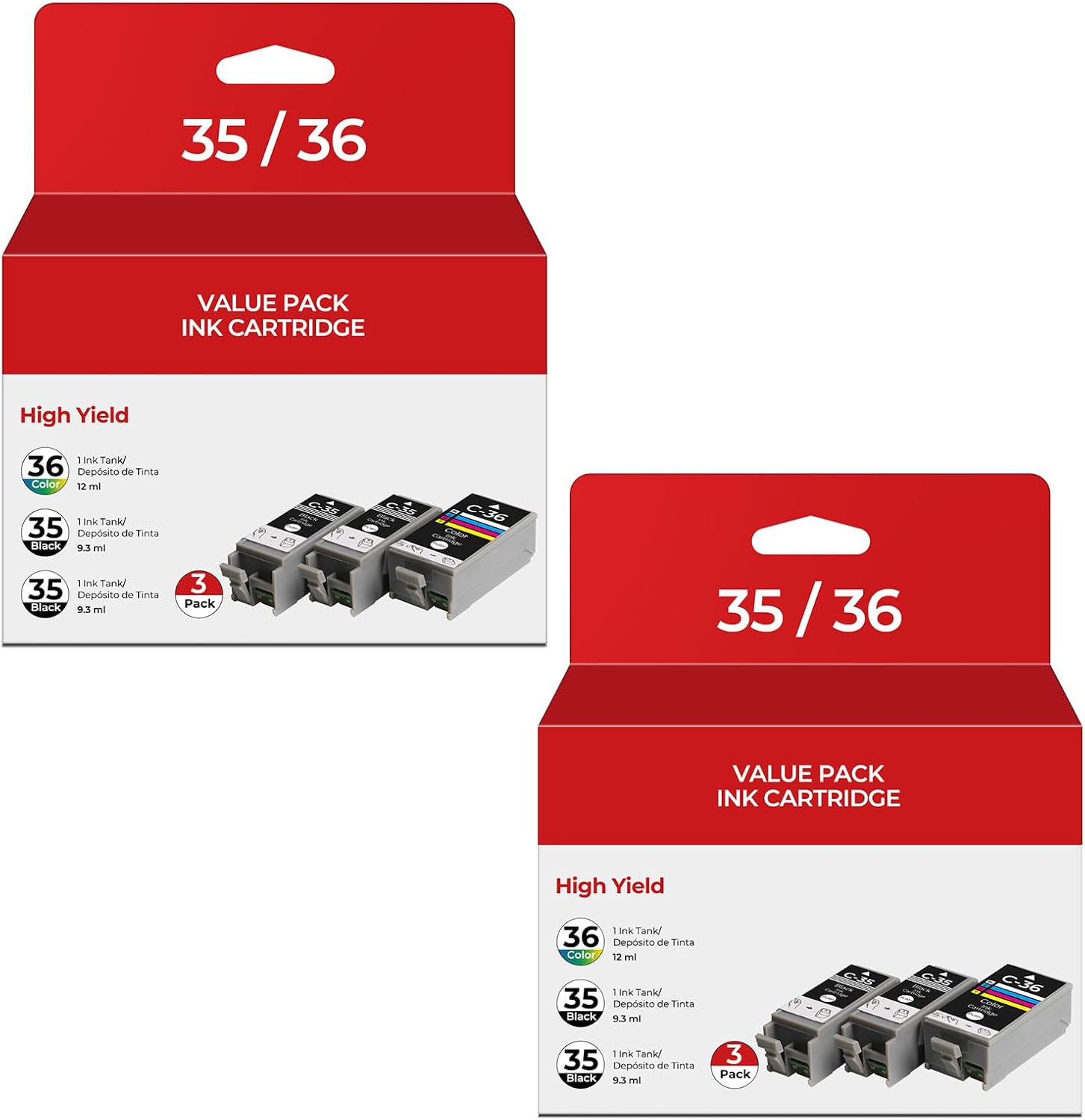 - Package Content: PGI-35 CLI-36 ink cartridges compatible for Canon 35 36 ink cartridges, includes 4 Pack Black PGI-35, 2 Pack Color CLI-36 ink cartridges