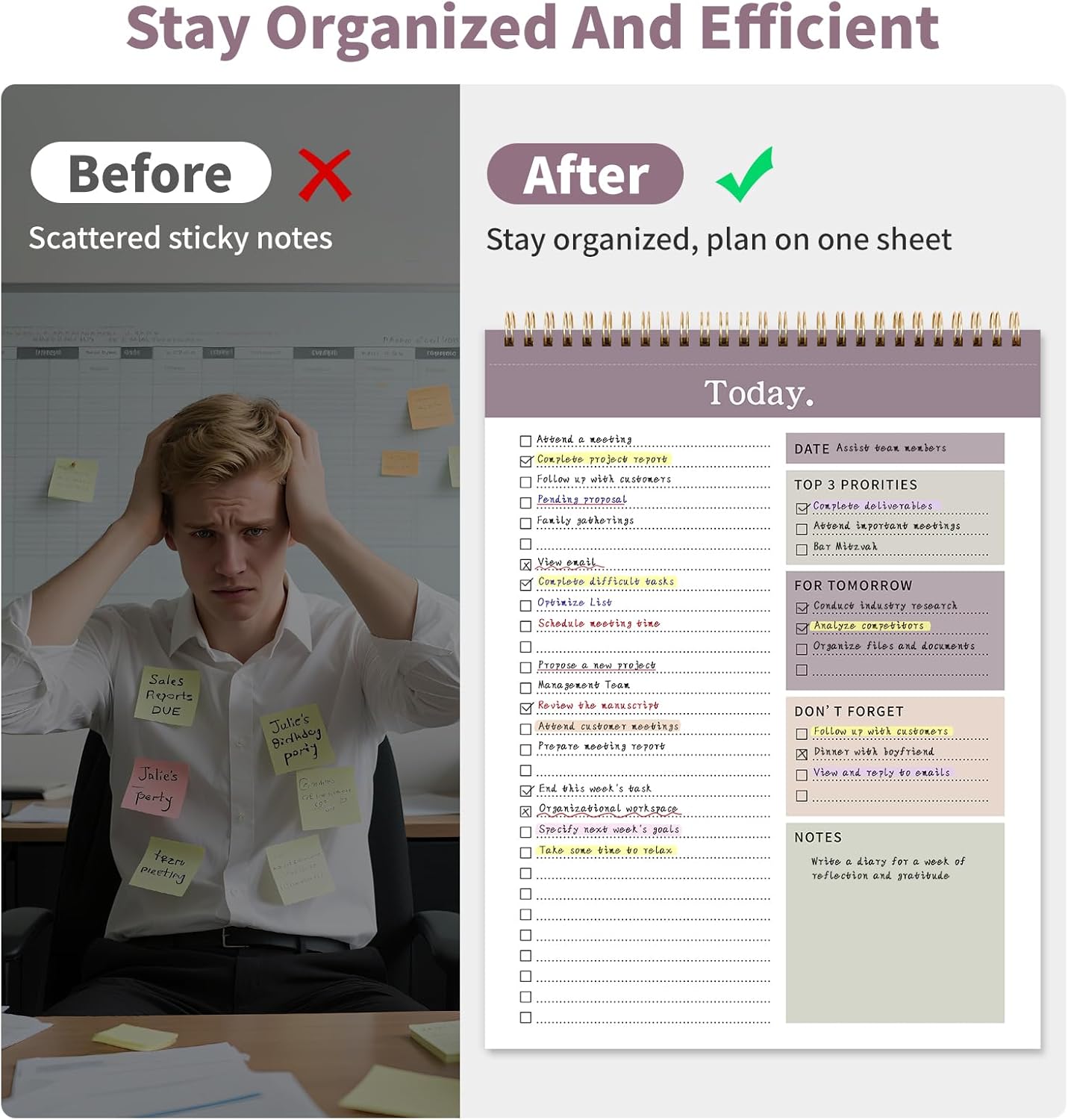 - High-Quality And Portable Design: Our planner is crafted with 100gsm thick paper, ensuring a smooth writing experience. The tear-off line design makes it easy to carry and use on the go, while the hard backboard provides a stable surface for writing and viewing.