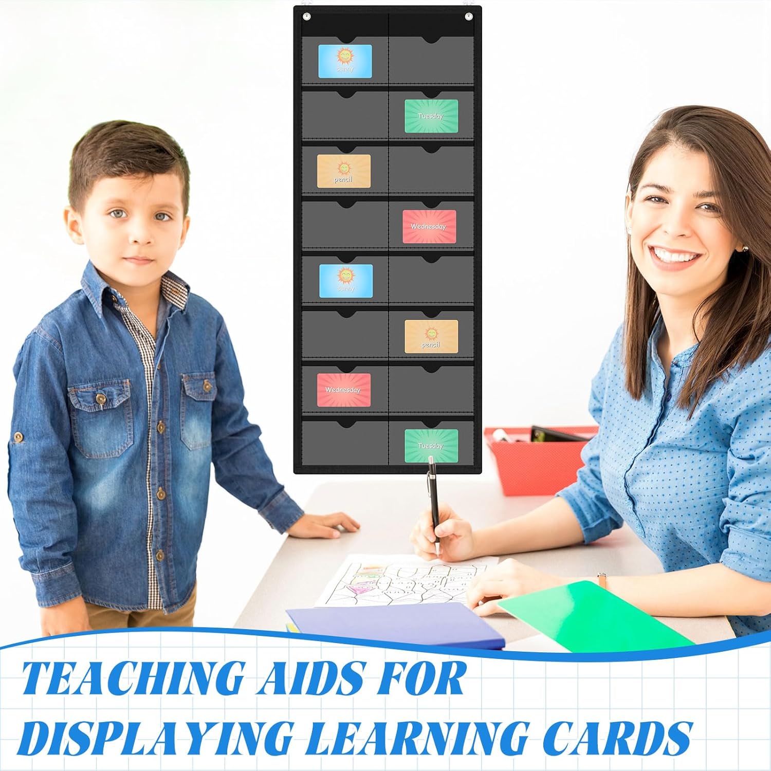 - Easy to Hang: the flash card organizer is very thin and lightweight, only 2 common pins are needed to hang, no need to use a lot of nails to install, drill holes or clutter your space, minimize damage to the wall