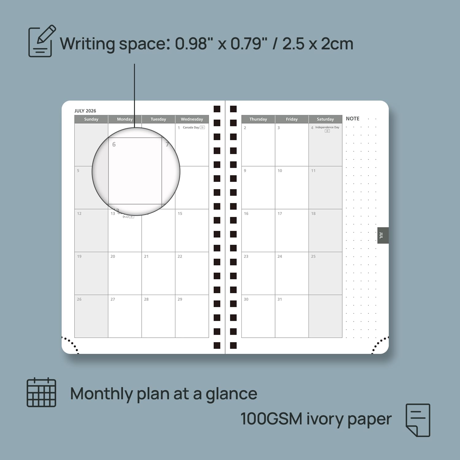 POPRUN 2026 Planner (Pocket Size 4''x 6.25'' Wire-Bond Hard Cover) Calendar Weekly and Monthly (Jan.2026-Dec.2026) Small Planner with Hourly Time Slots, for Purse, 100 GSM - Black