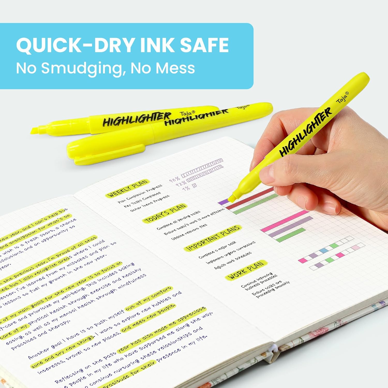 Taja 30 Pack Yellow Highlighters Bulk, Chisel Tip Highlighters Markers Set with No Bleed Ink, Perfect for School & Office Supplies