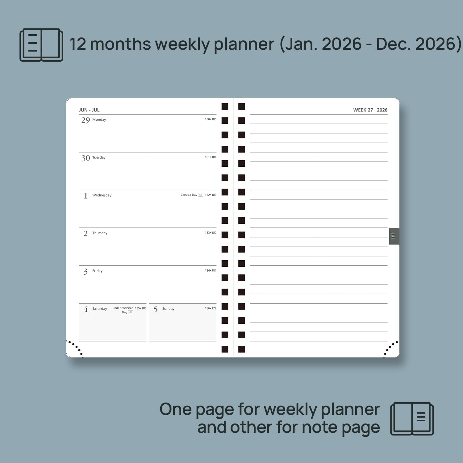 - ONE PAGE PER WEEK & HORIZONTAL LINE PAGE: Measuring pocket size-4''x 6.25'', this weekly planner (Jan. 2026 - Dec. 2026) is ensured with a generous weekly page layout and line notes pages for each week.
