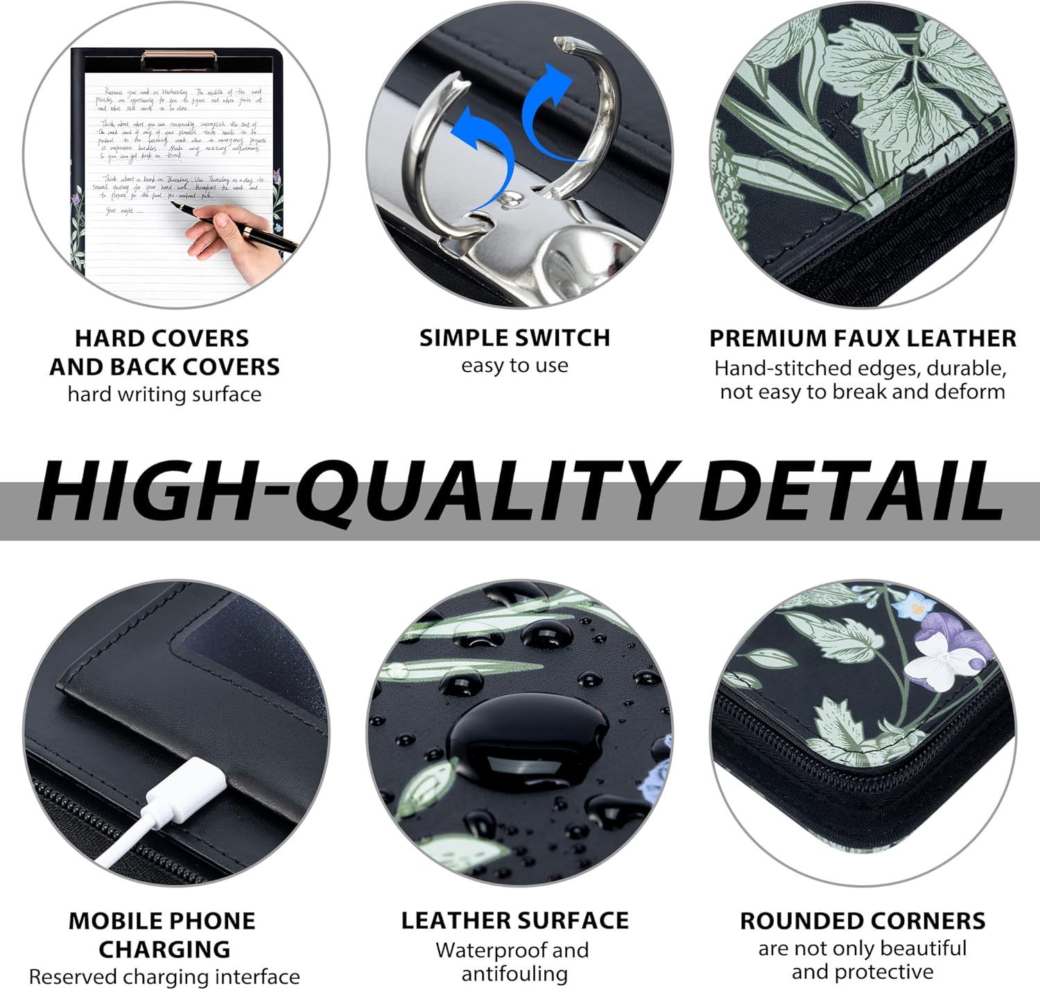 - Durable Clipboard Binder: Crafted from high-grade, water & stain-resistant faux leather with reinforced hand-stitched edges and hardcover backing. Rounded, wear-resistant corners shield against bumps. Maintains a sharp, professional look for years