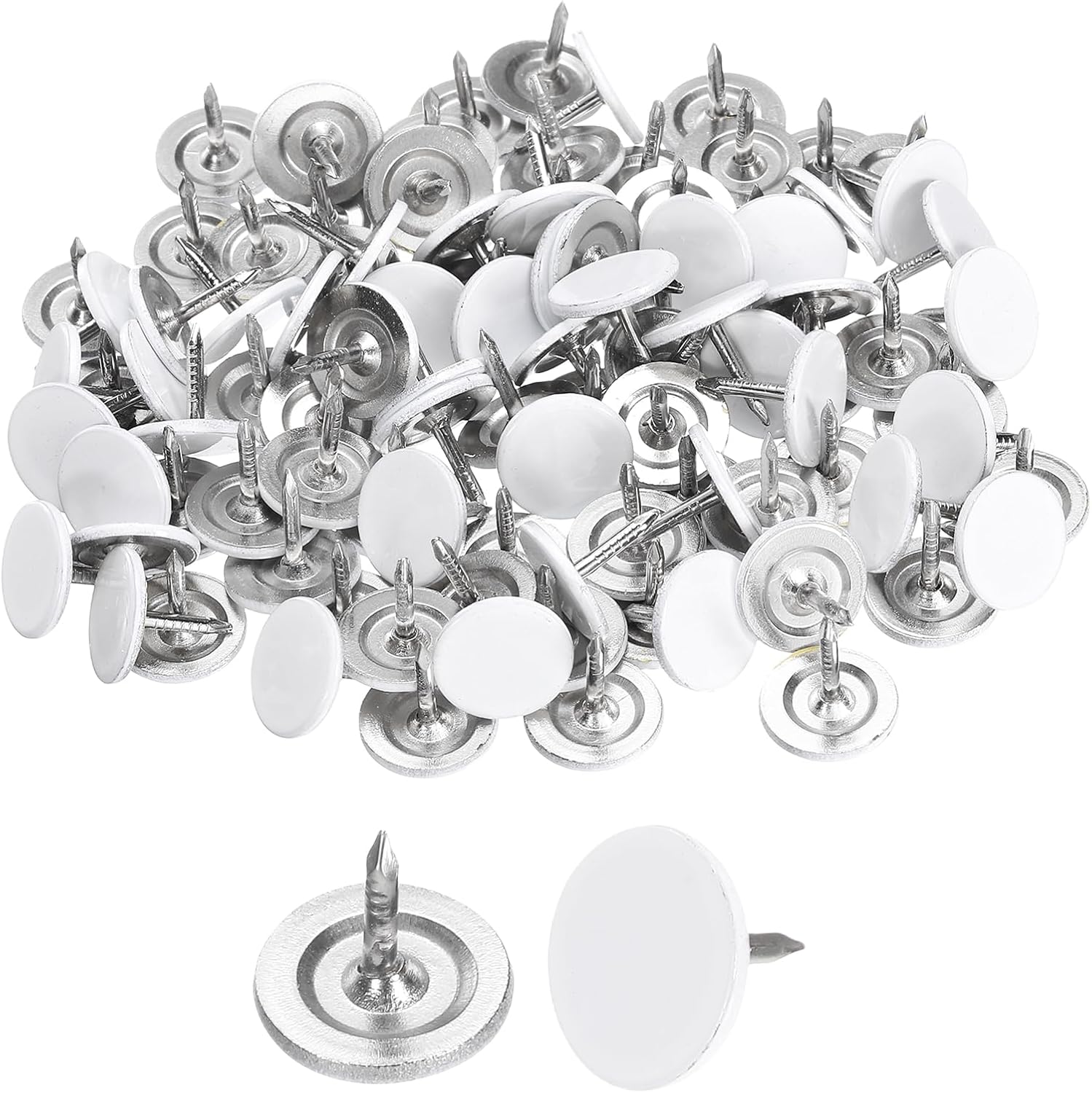 uxcell 100Pcs Upholstery Tacks, 11mmx10mm Flat Head Thumb Tack Decorative Furniture Nails Push Pins for Furniture Sofa Headboards, White