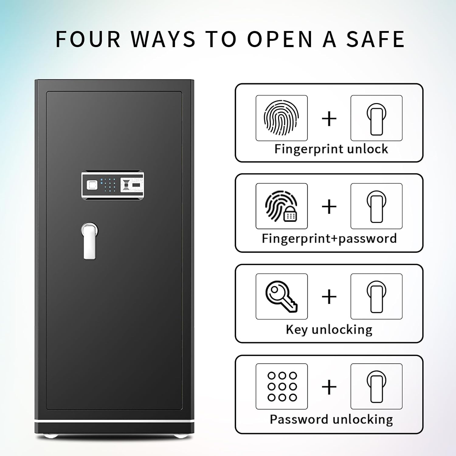 - 【EXTRA LARGE SECURITY SAFE】: Weighing in at 233lbs, this extra large security safe has been designed with maximum burglary resistance in mind to ensure that your valuables are fully protected. Equipped with high-strength solid locking bolts and pry-resistant hidden hinges, it effectively improves protection against malicious intrusion from outside. In addition, you can also use expansion screws to firmly fix the safe to the wall to further enhance its anti-theft security.