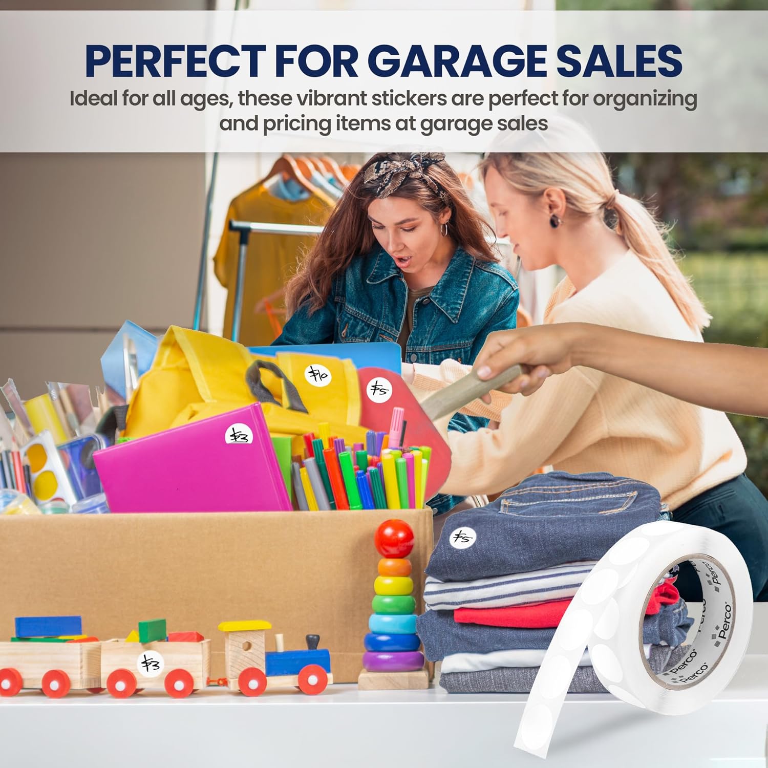 Perco White 1-Inch Round Circle Dot Sticker Labels with Removable Adhesive – 1,000 Labels per Roll – Versatile, Vibrant Colors, Reliable Hold, No Residue, Perforated for Convenient Use – Made in USA