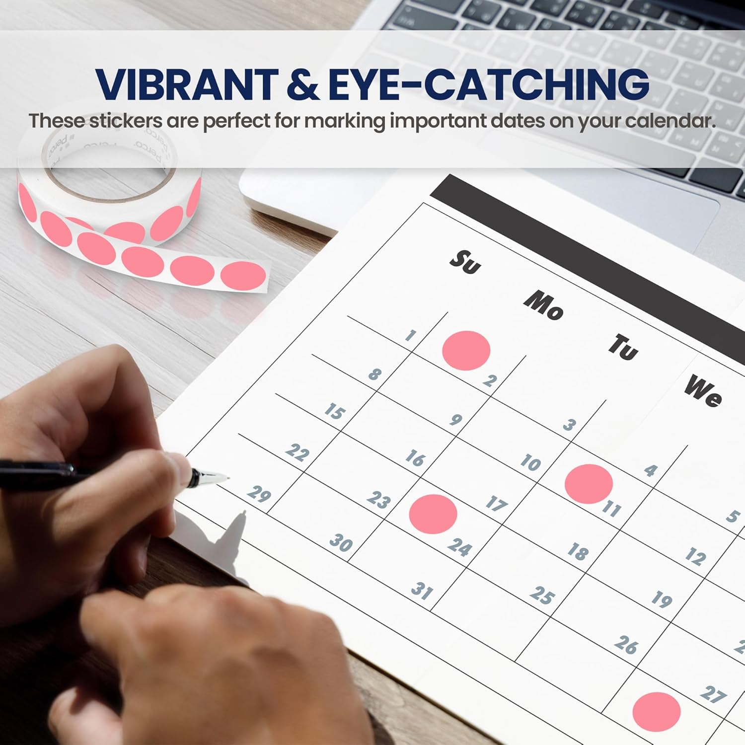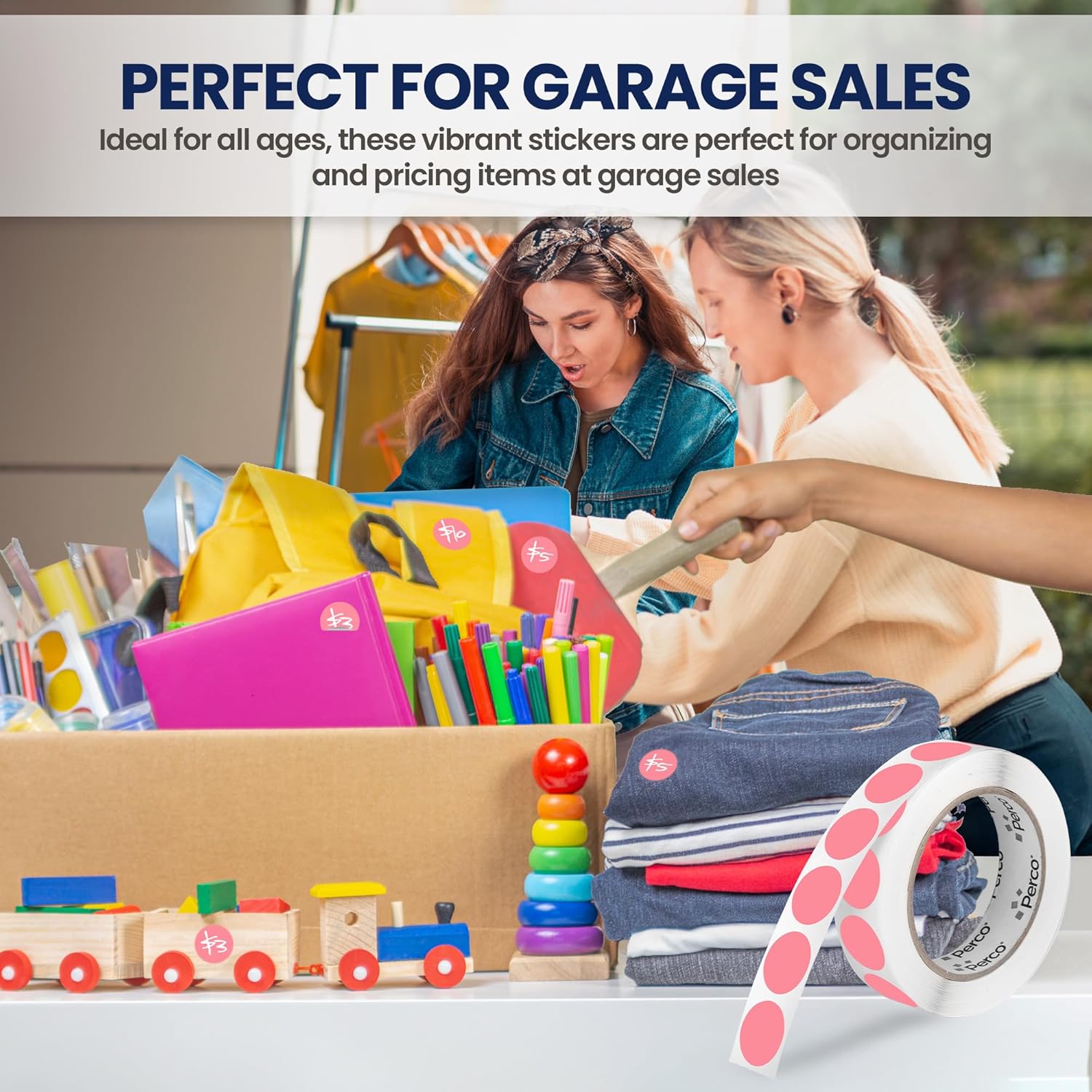 Perco Pink 1-Inch Round Circle Dot Sticker Labels with Removable Adhesive – 1,000 Labels per Roll – Versatile, Vibrant Colors, Reliable Hold, No Residue, Perforated for Convenient Use – Made in USA