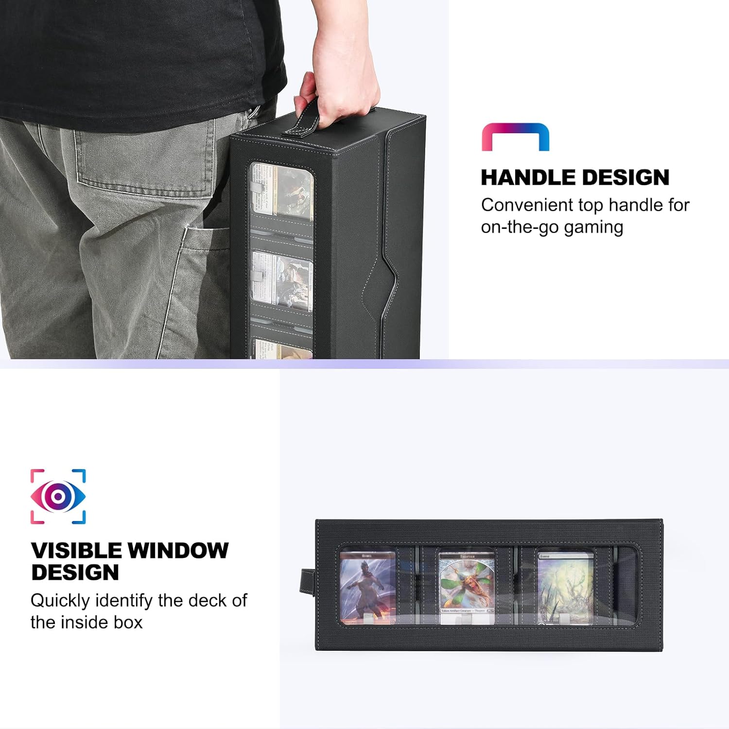 - Practical and Portable: Each modular deck box features a dedicated commander slot equipped with 35PT magnetic card holder for quick identification; The outer storage case includes both a carrying handle and transparent viewing windows on both sides