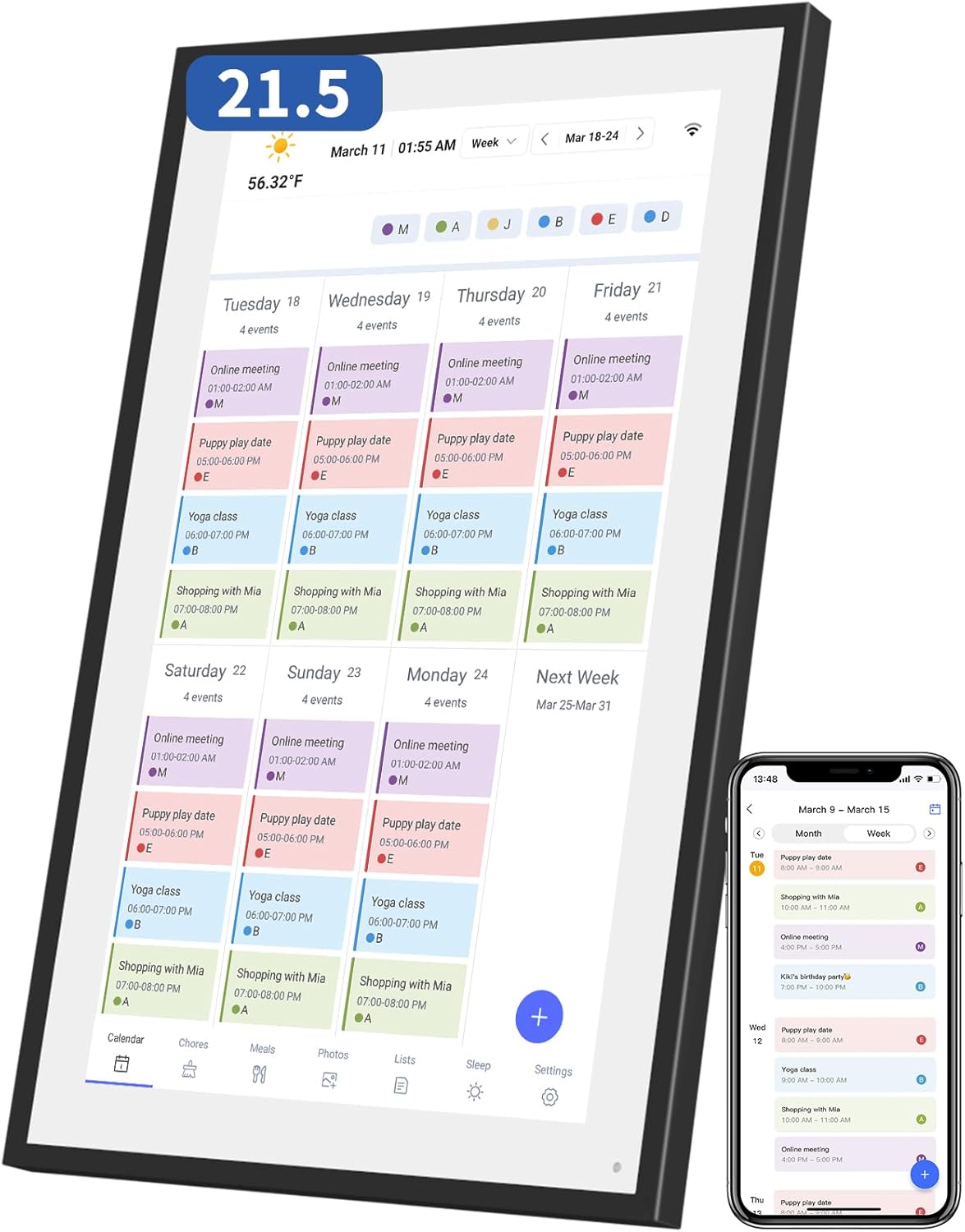 - 【 🗓️ All-in-One Smart Calendar & Family Planner】More than a basic digital calendar—sync chores, appointments, and events in one place. Color-coded profiles, appointment calendar reminders, and progress tracking keep everyone organized.