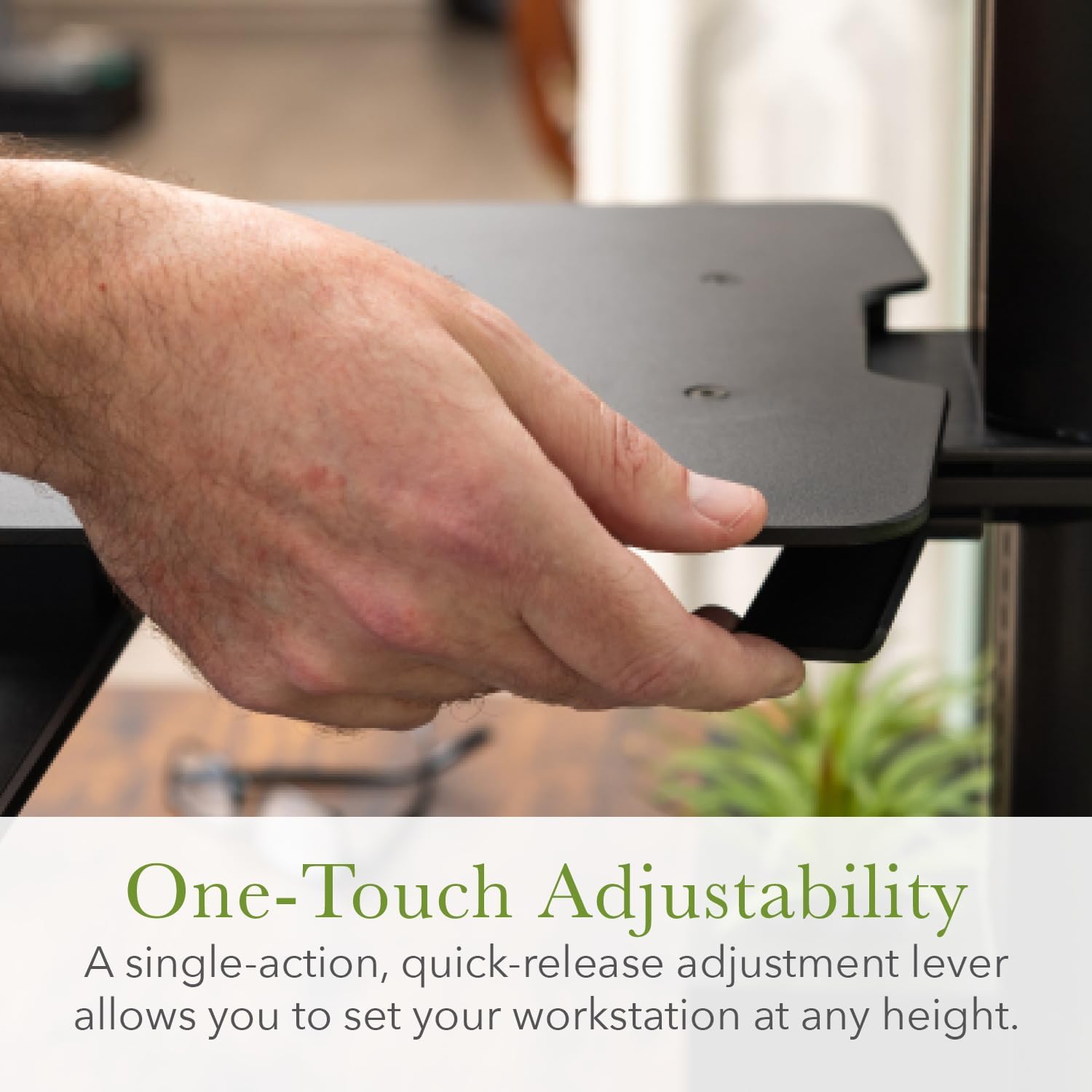- BUILT FOR MOVEMENT – The Sit2Stand standing desk converter transitions from sitting to standing with just one hand using a single-lever adjustment. The dual monitors (not included), keyboard tray, and worksurface are all raised and lowered together seamlessly, supporting better posture at any height.