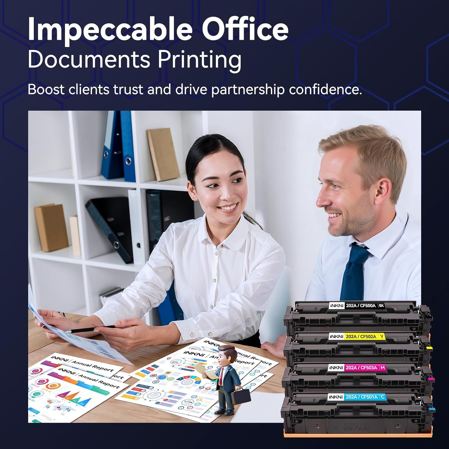 - [Vibrant Print Quality] Compatible for HP 202a color toner cartridges CF500x 202x - deliver sharp text, vibrant colors, and consistent quality, inspiring confidence in professional documents and pride in home creations