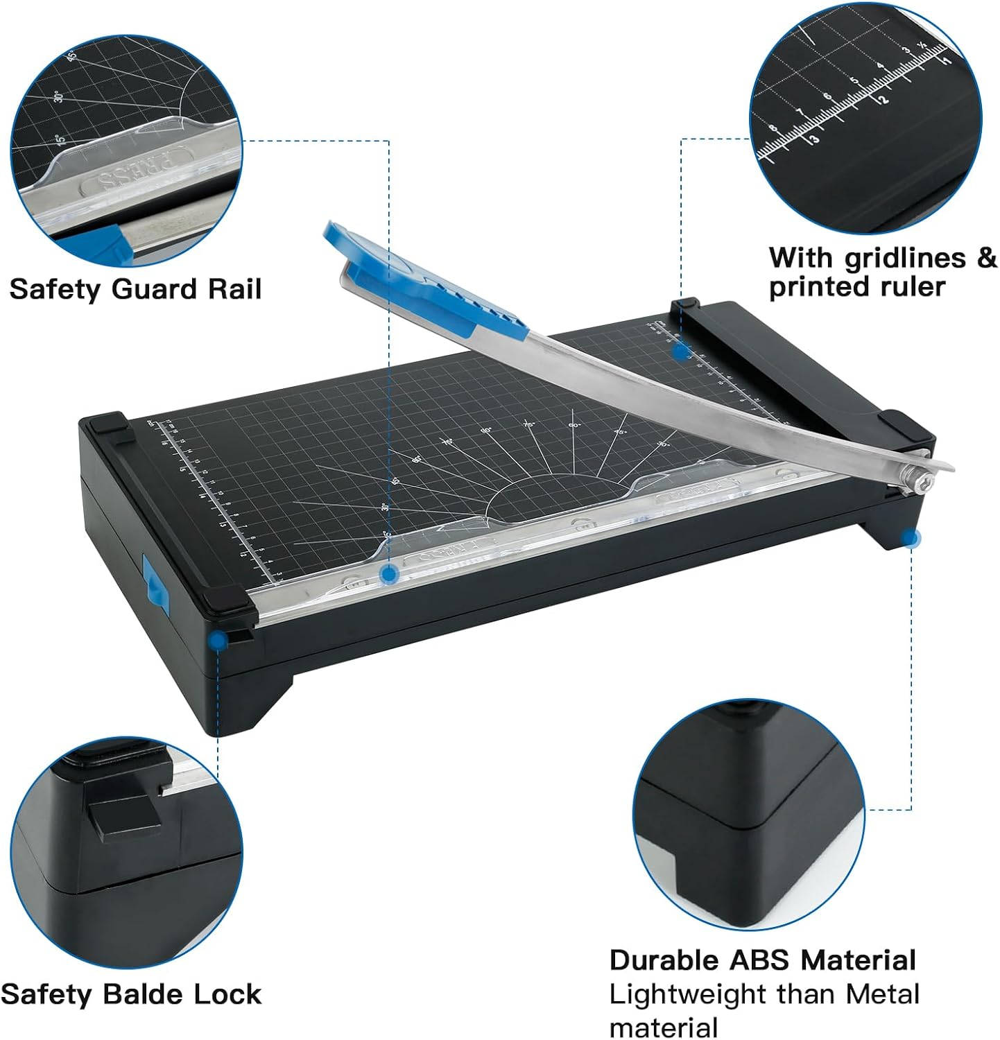 - Dual Cutting Options – Includes both a guillotine cutter and a rotary paper trimmer for versatile use. Perfect for trimming paper, photos, and card stock with clean, accurate cuts.