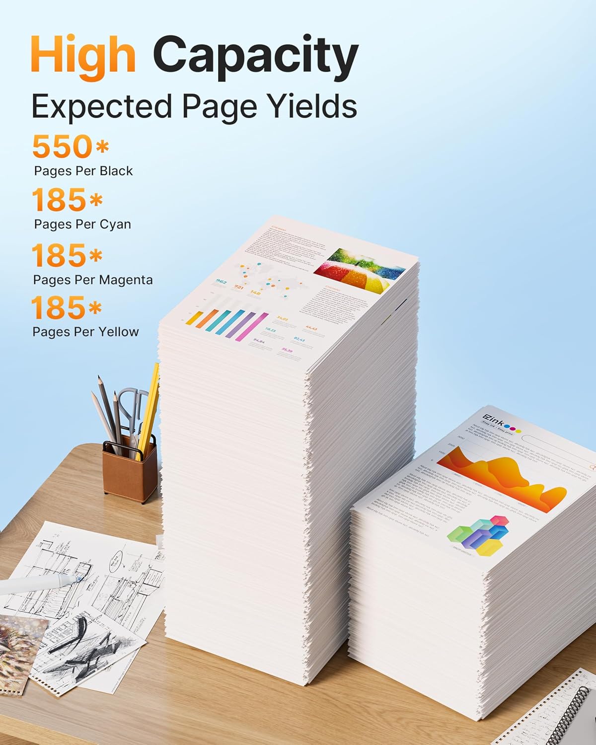- Page Yiled: 550 Pages per 222XL Black ink cartridge and 185 Pages per 222 Cyan Magenta Yellow Color ink cartridge at 5% coverage.