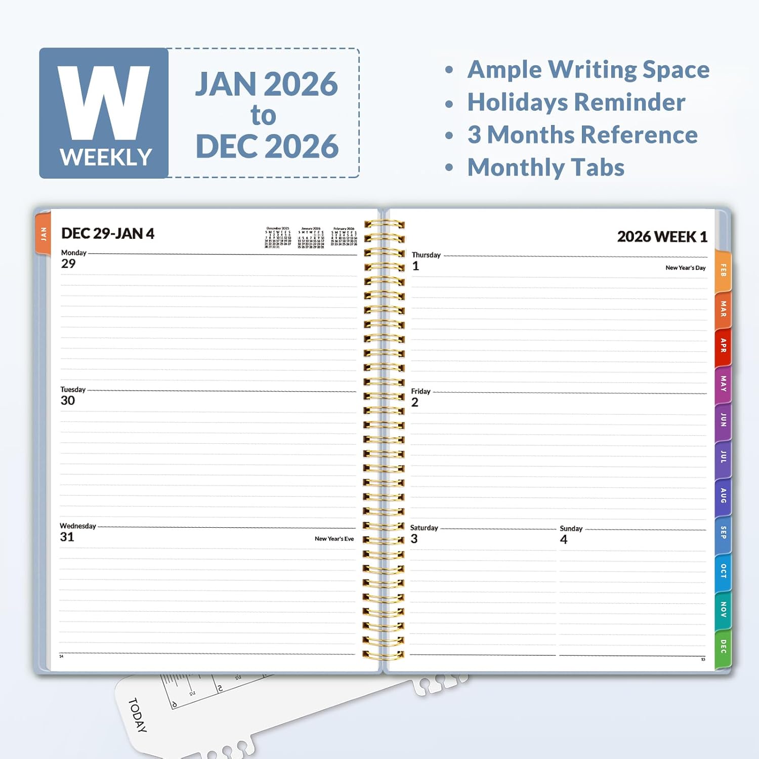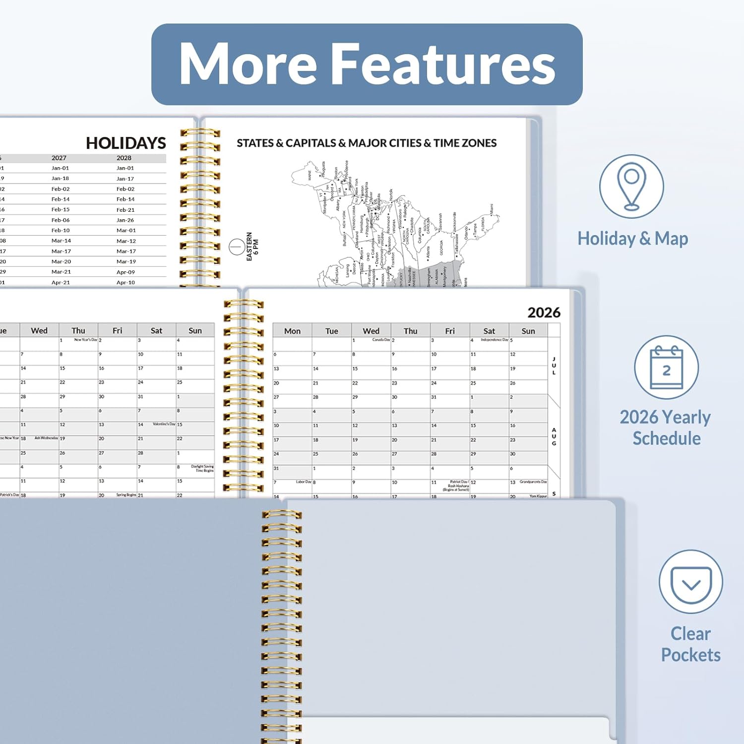 SUNEE 2026 Weekly and Monthly Planner - from January 2026 - December 2026, 8.5"x11" Daily Agenda Planner with Monthly Tab, Flexible Cover, Note Pages, Pockets, Bookmark, Spiral Binding, Gray Blue