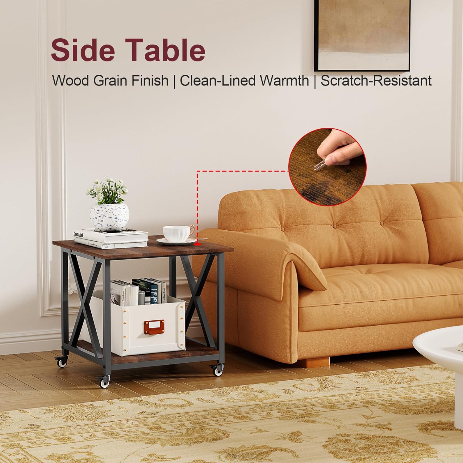 2-Tier Large Printer Stand with Storage Shelf, 23.6 x 23.6 Inches Printer Table, 2-Tier Rolling Cart with Industrial Wheels for Home Office, Mini Fridge, Laser, 3D Printer (Rustic Brown)