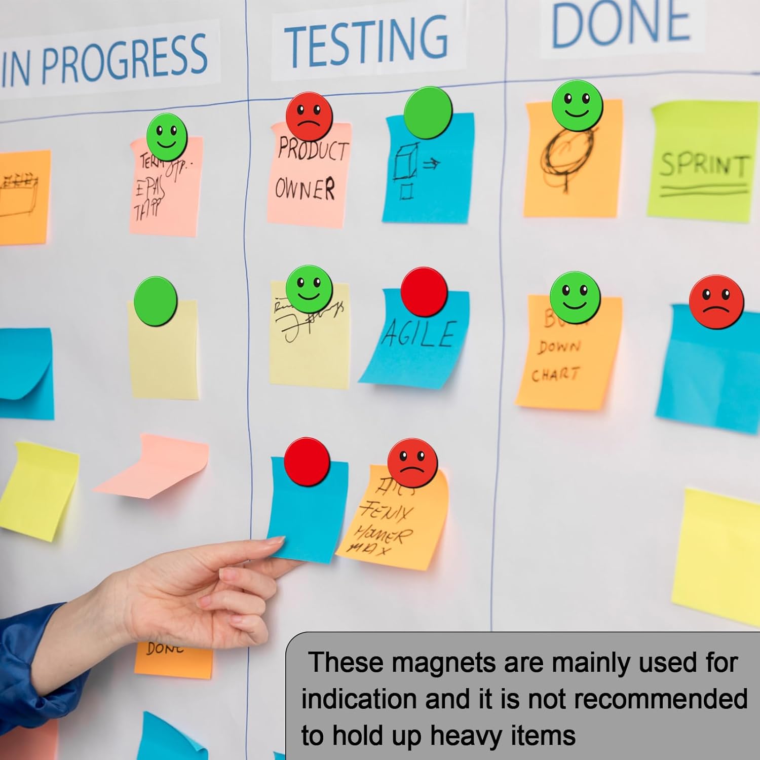 - High quality whiteboard magnets, PVC coated for greater durability, and special soft magnets for stronger performance