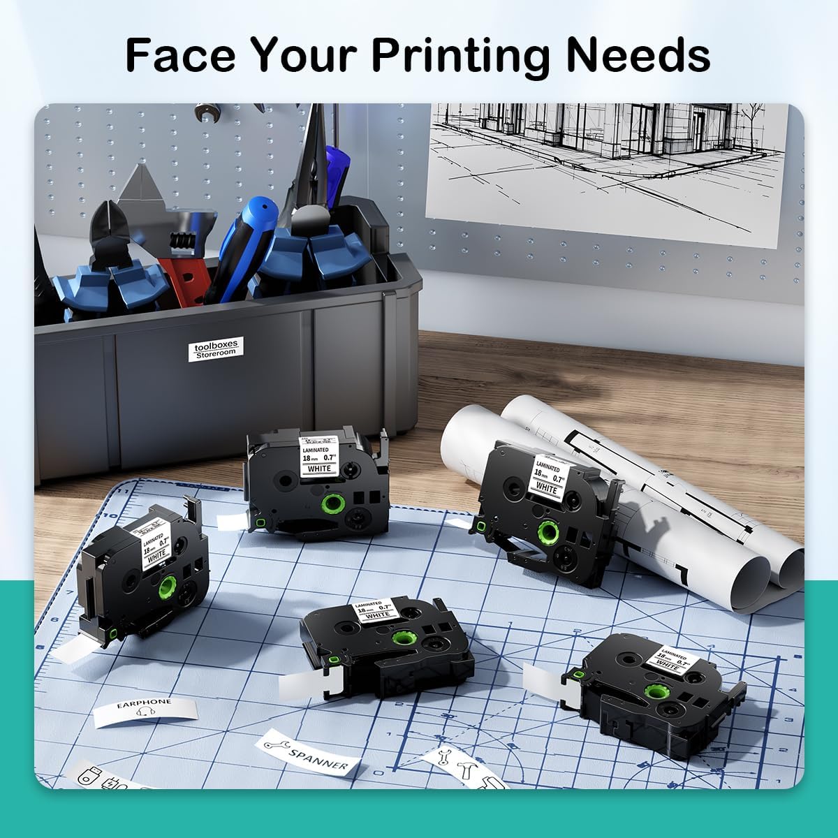 - [Compatibility] Labelife 18mm 0.7 inch tze tz label tape compatible with Brother p touch label maker PT-D400, PT-D600, PT-D410, PT-D460BT, PT-D610BT, PT-D400AD, PT-D400VP, PT-D600VP, PT-P710BT, PT-P750W, PT-P700, PT-2730VP, PT-H500LI, PT-2730, PT-2430PC, PT-D450, PT-1880, PT-1830, PT-1890SC, PT-2300, PT-300, PT-310, PT-E300, PT-E300VP, PT-E500, PT-E550W, PT-520, PT-530, PT-540, PT-550, PT-1400, PT-1500, PT-1500PC, PT-1600, PT-2110, PT-2200, PT-2210, PT-2300, PT-2310, PT-2400, PT-9700PC and more