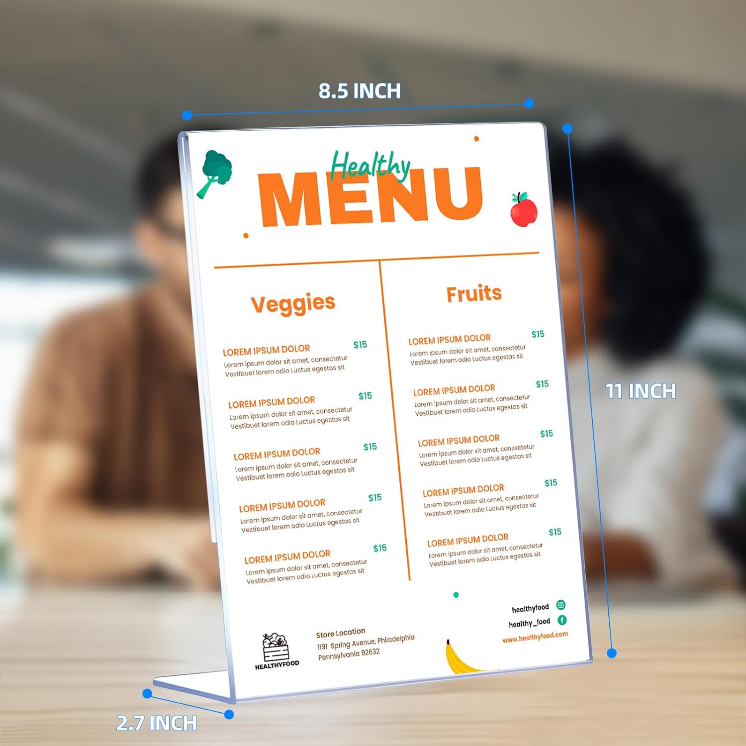 - Acrylic Sign Holder 8.5 x 11 Premium Clarity & Durability: Crafted from crystal-clear acrylic sheets, these 8.5x11 acrylic sign holders ensure scratch-resistant, long-lasting visibility for signs, flyers, or documents.