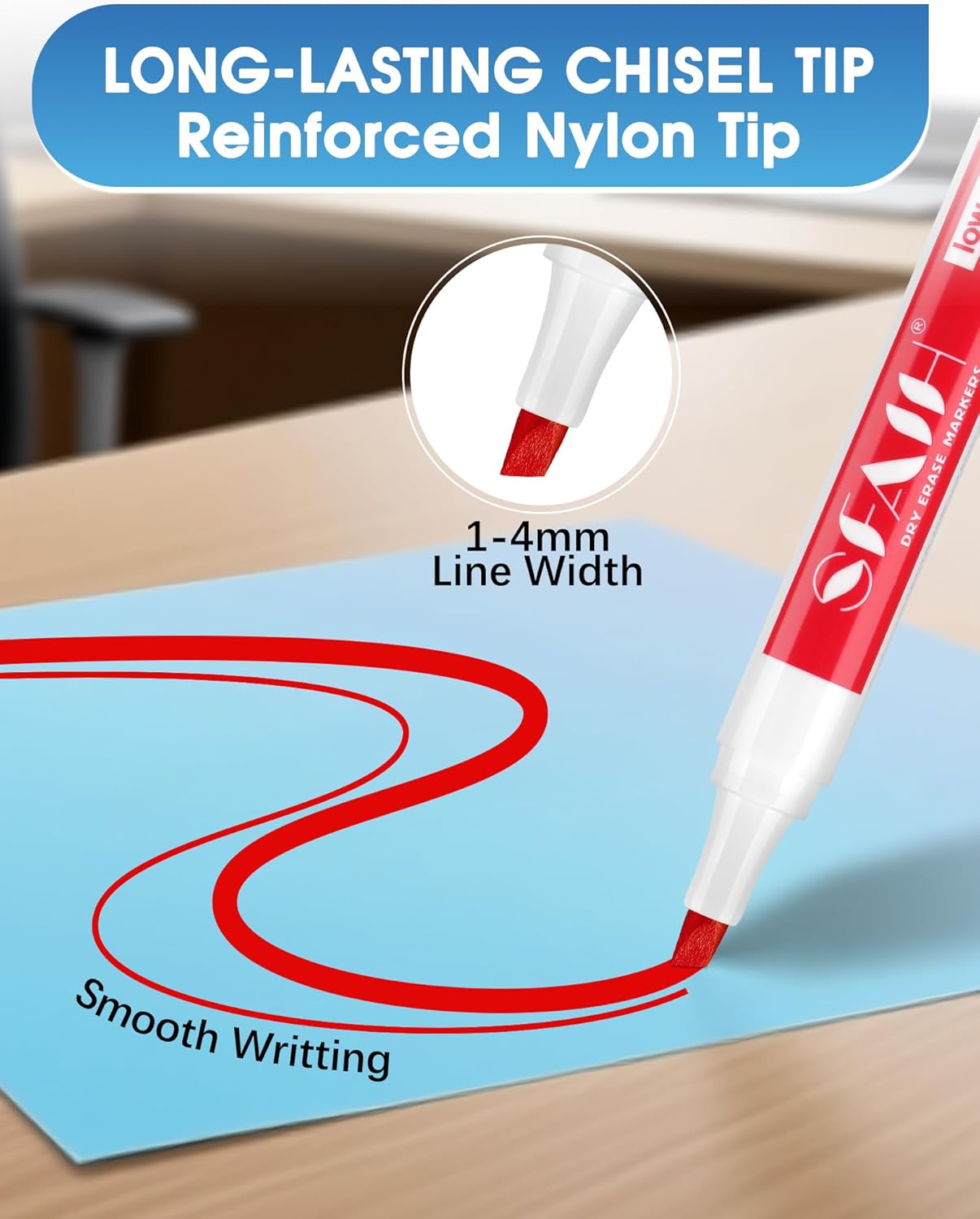 SFAIH Dry Erase Markers Chisel Tip with Magnetic Whiteboard Eraser, 48 Bulk 12 Assorted Colors White Board Markers for Teachers, Versatile Lines, 1s Quickly Dry, Perfect for Classroom and Office