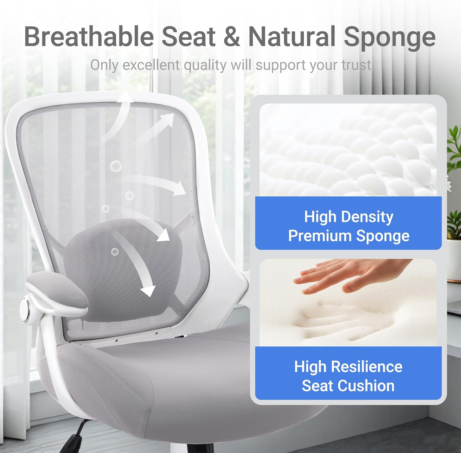 HYLONE 400lbs Heavy Duty Office Chair, 5" Thickened Seat Ergonomic Desk Chair with Adjustable Armrests, Home Office Computer Chairs for Long Hours Mesh Executive Chair(Grey)