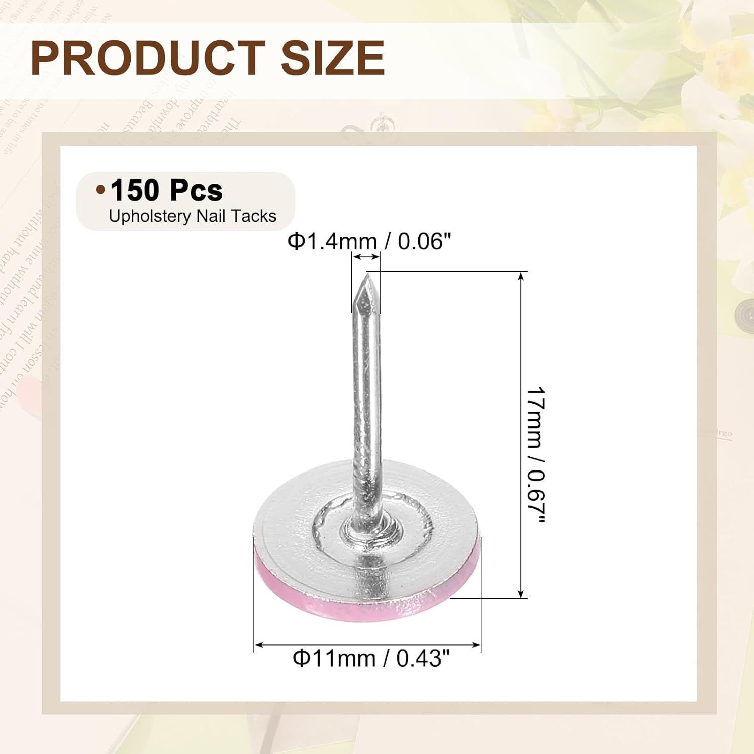 uxcell 150Pcs Upholstery Tacks, 11mmx17mm Flat Head Thumb Tack Decorative Furniture Nails Push Pins for Furniture Sofa Headboards, Pink