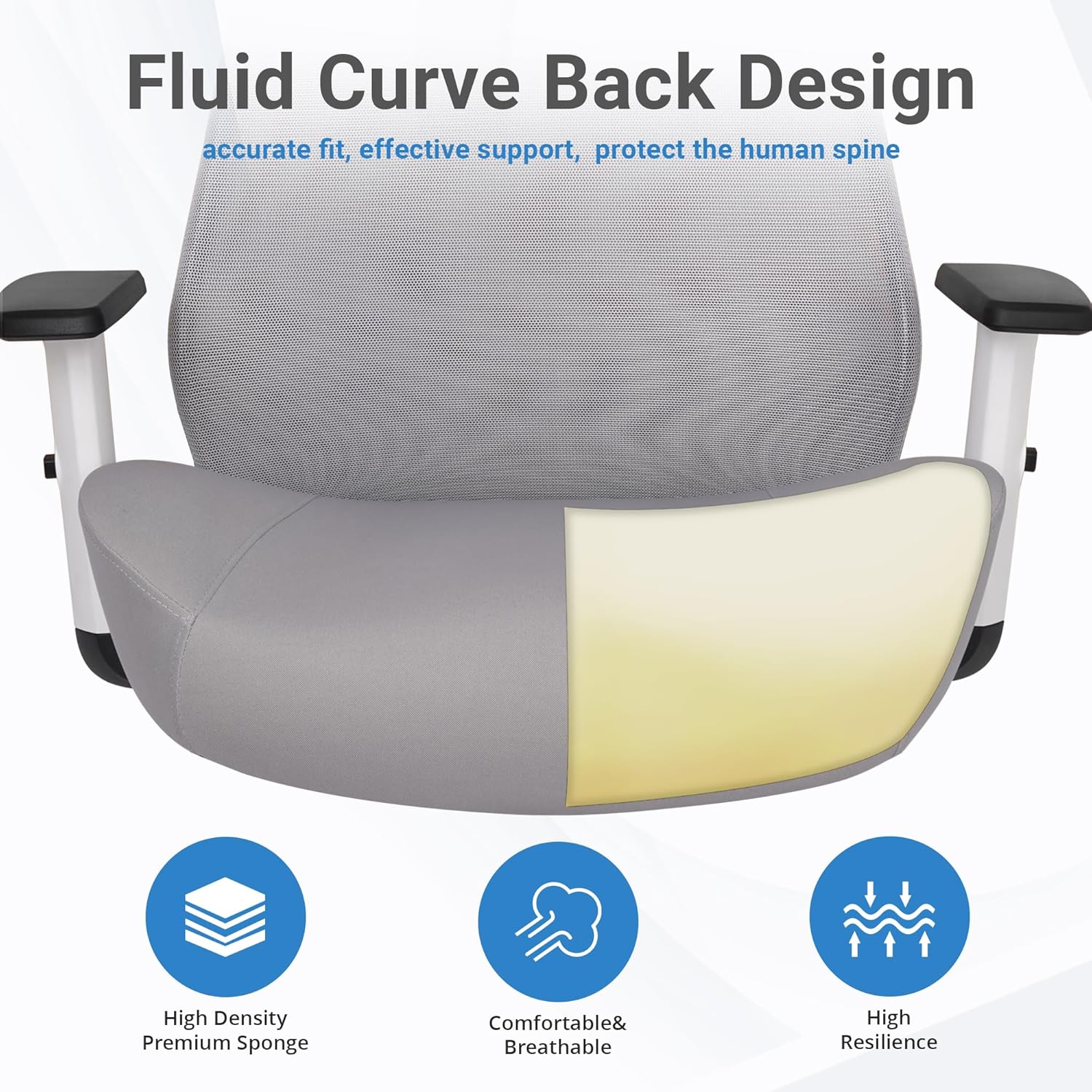HYLONE Office Chair, 5" Thickened Seat Ergonomic Desk Chair with Adjustable Armrests, Home Office Computer Chairs for Long Hours Mesh Executive Chair(White Base&Grey)