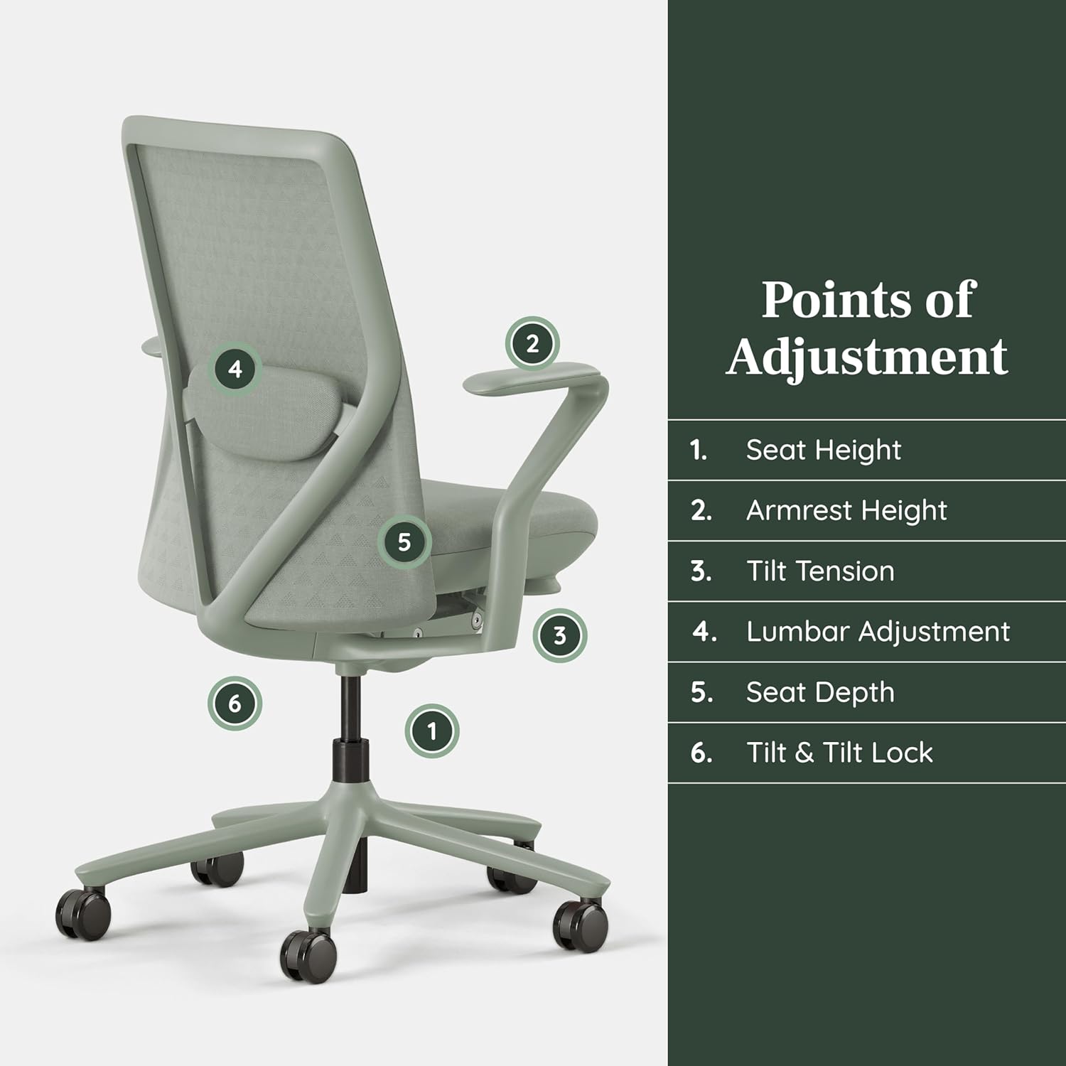 Branch Verve Chair - High Performance Executive Office Chair with Contoured Seat Back and Adjustable Lumbar Rest - High Density Foam Cushion with Aluminum Base - Up to 275 lbs - Mint