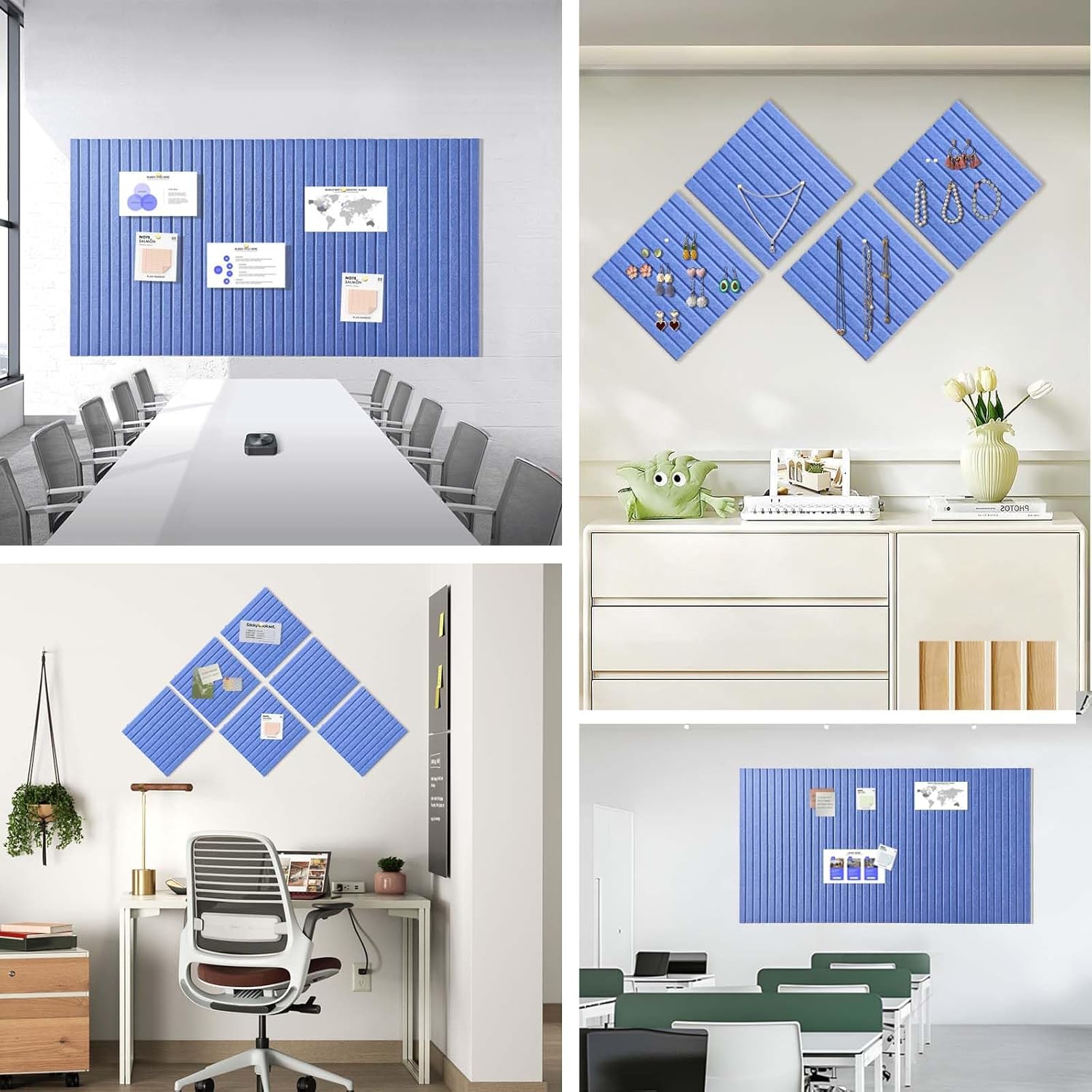 Large Cork Board for Office, 8 Pack Felt Wall Tiles with Slat Wall Paneling and Safe Removable Adhesive Tabs, Felt Bulletin Board Pin Board Cork Boards for Walls (Blue)
