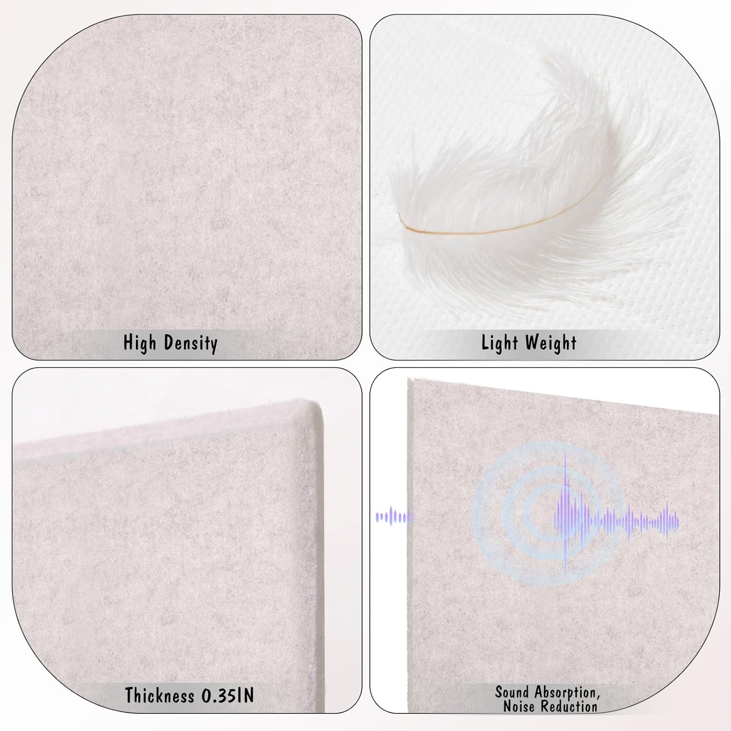 - 【Package Includes】You will receive 6 pack felt wall tiles and 1 box colorful thumbtacks (about 30pcs). The size of each felt wall tile is 11.8" x 11.8" and the thickness is about 0.35". You can splice them into the desired shape and size according to your needs, such as 36" x 24", 12" x 72", etc.