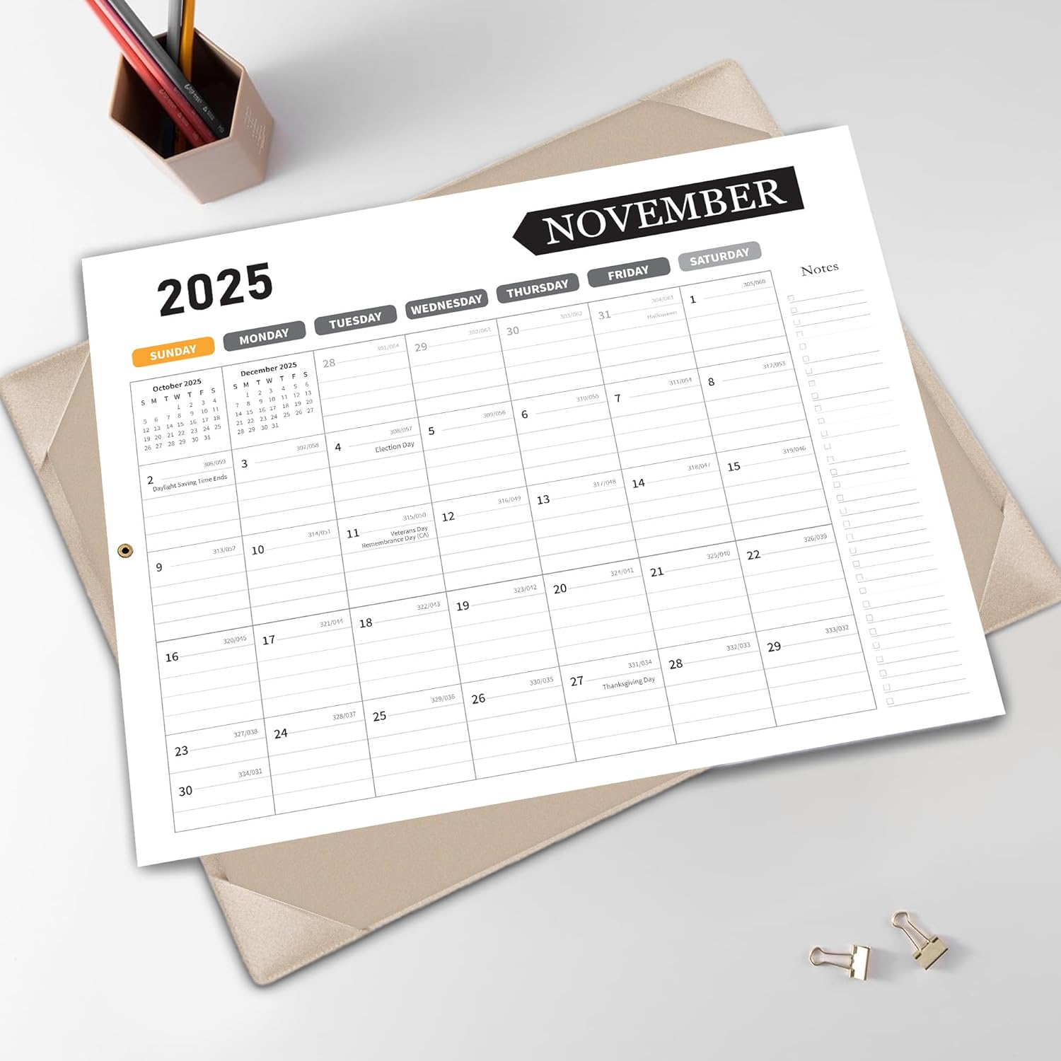 - 22" x 17"Oversized Calendar: Measuring 22" x 17", this desktop calendar provides ample space for writing down your daily tasks, agenda arrangement, and ideas without feeling cramped, The larger size also allows for better visibility of each day's events and notes
