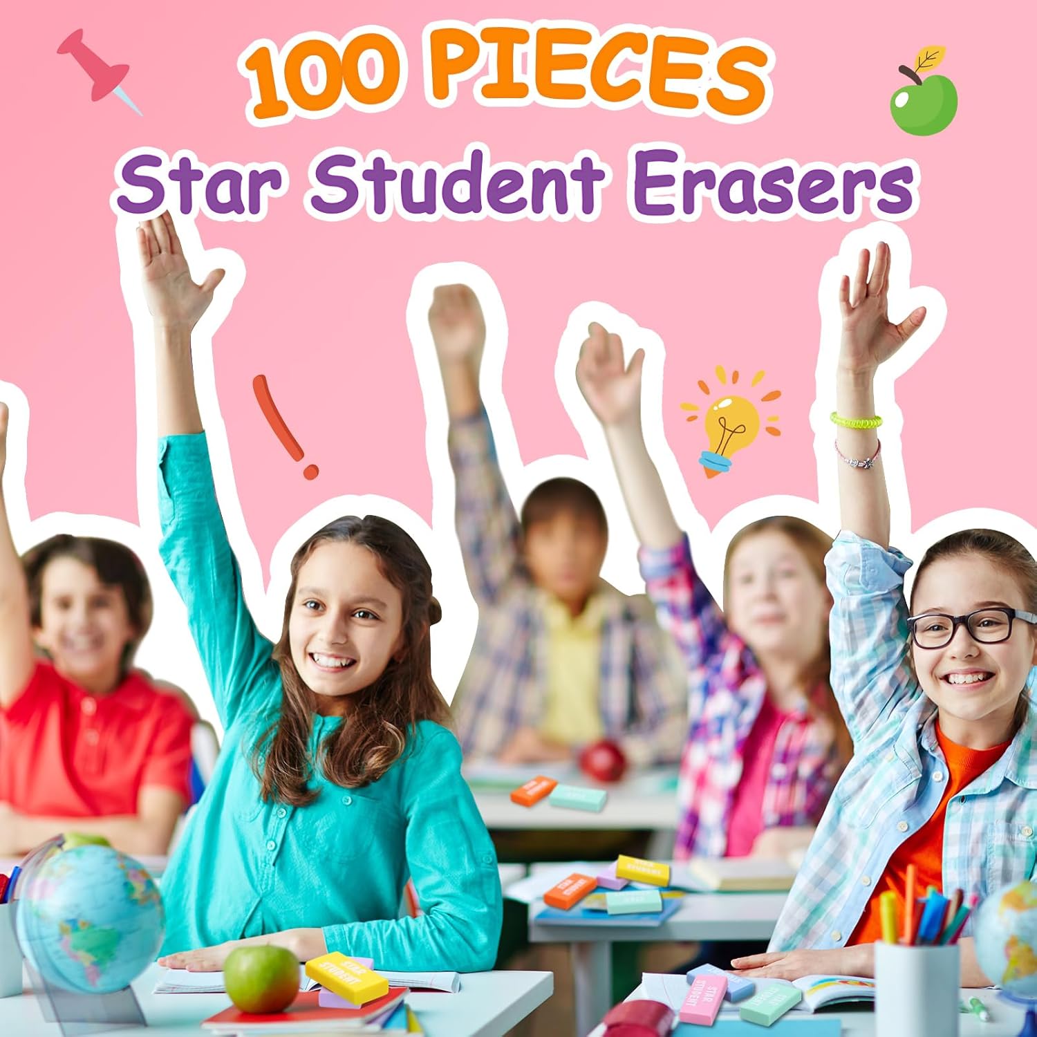 - Generous Packaging: this package includes a hefty 100 star student erasers, ensuring endless supply for both personal and classroom use; Never worry about running out and always be prepared