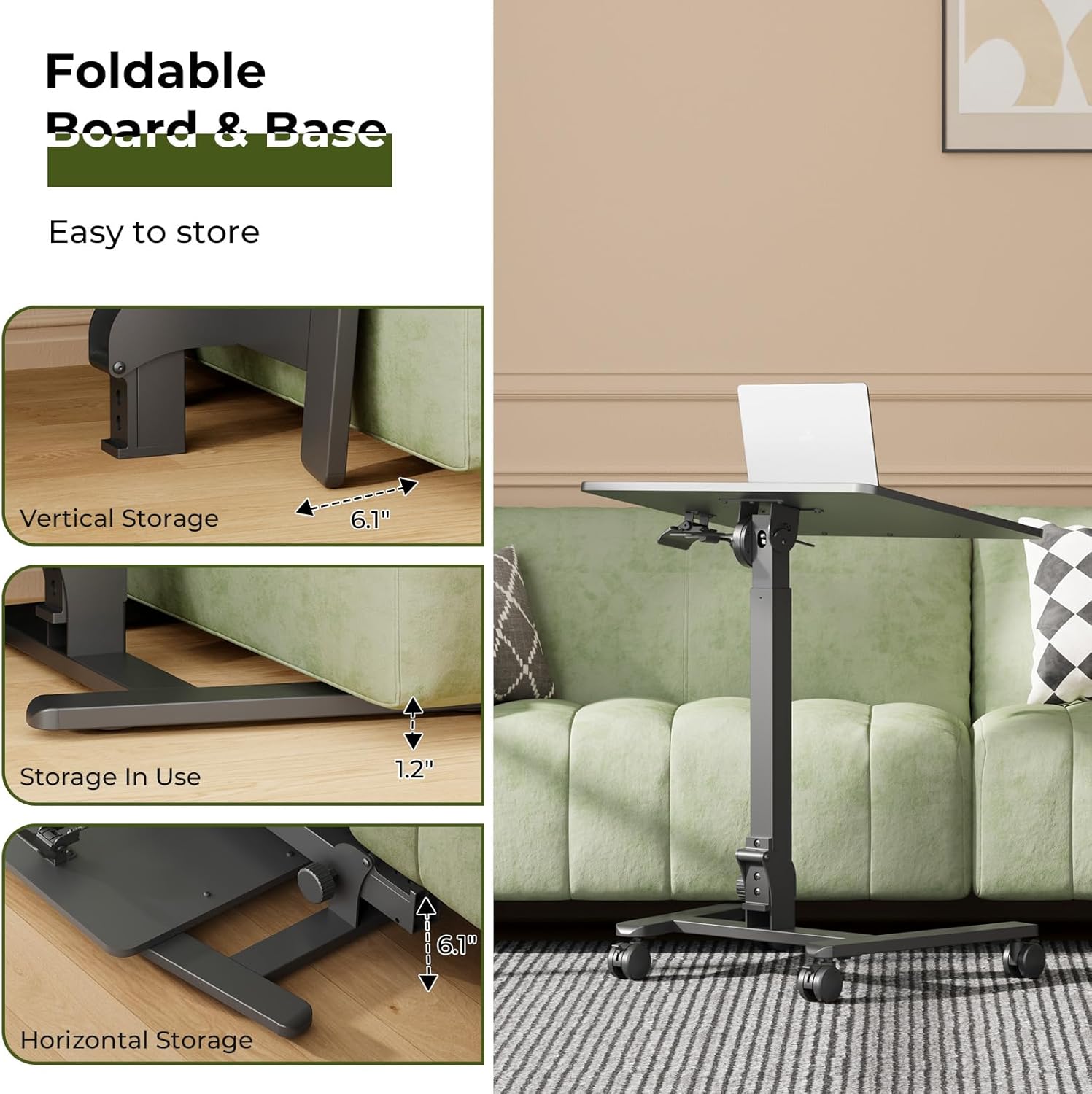 Foldable Standing Desk,Small Mobile Sit-Stand Desk with 90 Tiltable Top,Rolling Rising Laptop Workstation Adjustable Height,Portable Table on Hidden Wheels/4 Lockable Casters,Black
