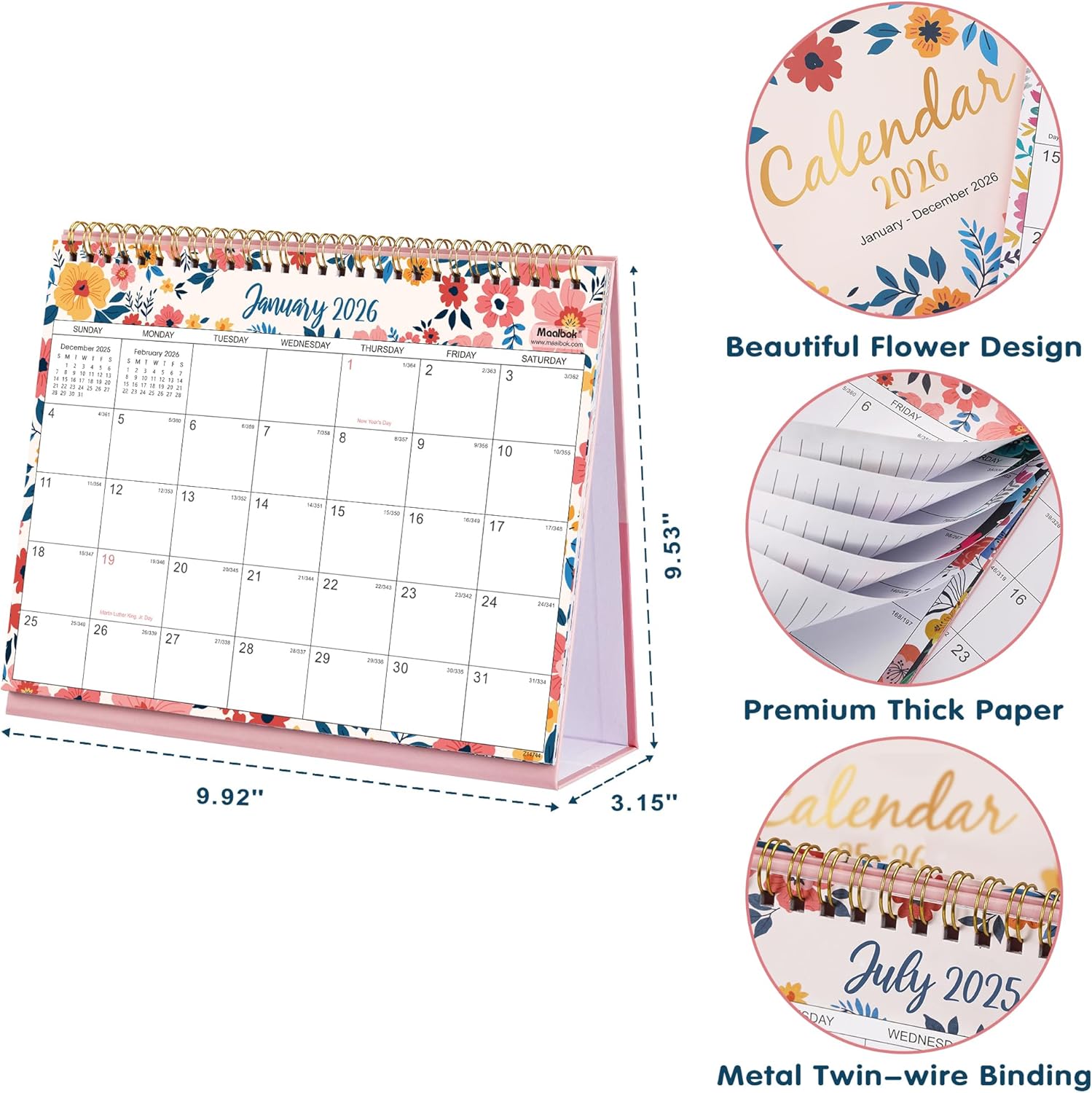- š¼ 2026 DESK CALENDAR ā JAN 2026 ā DEC 2026, this desk calendar 2026 standing flip covers 12 months calendar for more than year-round planning or organizing. Size: 10" x 8.3", perfect for your desk to help you focus on easily scheduling daily life without taking up too much desktop space.